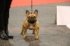 Exc tête large et carrée, exc forme des yeux et couleur, exc stop, exc oreilles, exc mâchoires, exc épaules, exc antérieurs, jolis pieds avec ongles foncés, exc poitrine côtes arrondie, dos solide,léger roch back, arrière main un peu droite, queue courte et présente, belle robe, exc mouvement, exc présentation.