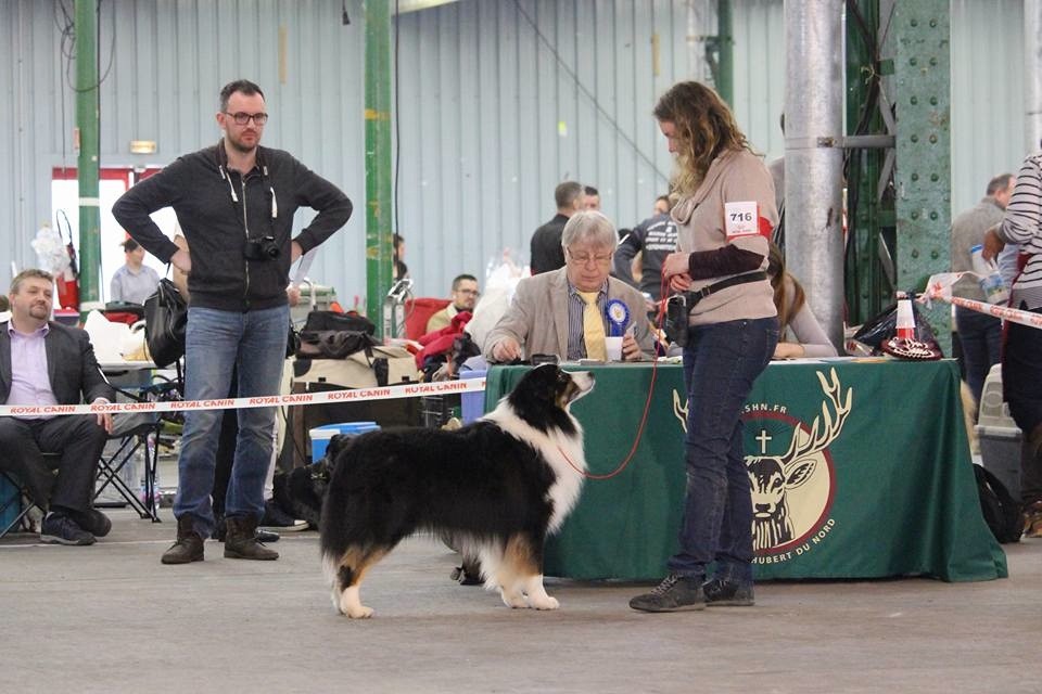Classe jeune mâles: 7 chiens présents.DCC, Stop modéré, oreilles bien portée bonne longueur,Belle encolure, Exc dos rein et croupeBelle ossatureExc aplomps, pieds, angulation.Mouvement régulier en arr.allures