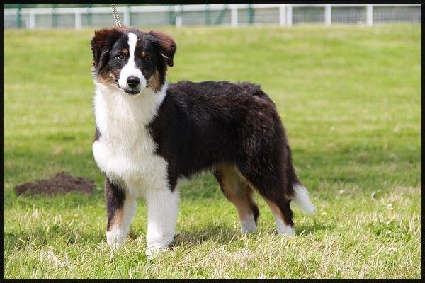 Bonne taille, bien typé, dentition cisaille. tête un peu étroite, bien construit, exc pieds, aplombs, ligne de dessus et bon volume de poitrine pour l'âge, joli mouvement