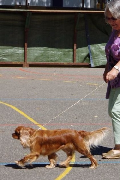 Ensemble un peu léger, bien proportionné, poitrine un peu courte, es épaule et aplombs AV, exc. and AR, crâne un peu ronde, oreilles attachés un peu basse, ?il un peu clair, articulé correcte, ligne de dessus pas assez firme à l?action, fouet correcte