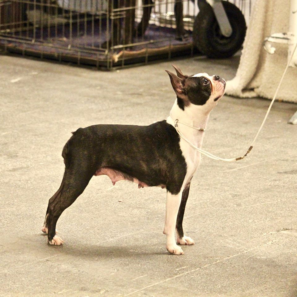 Chien Boston Terrier hilltops Sky's the limit at heavenly stars
