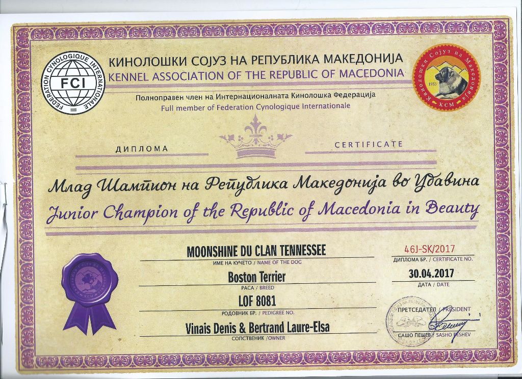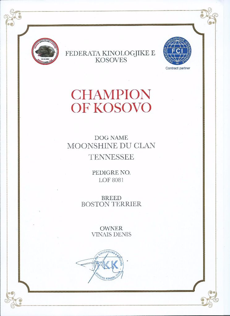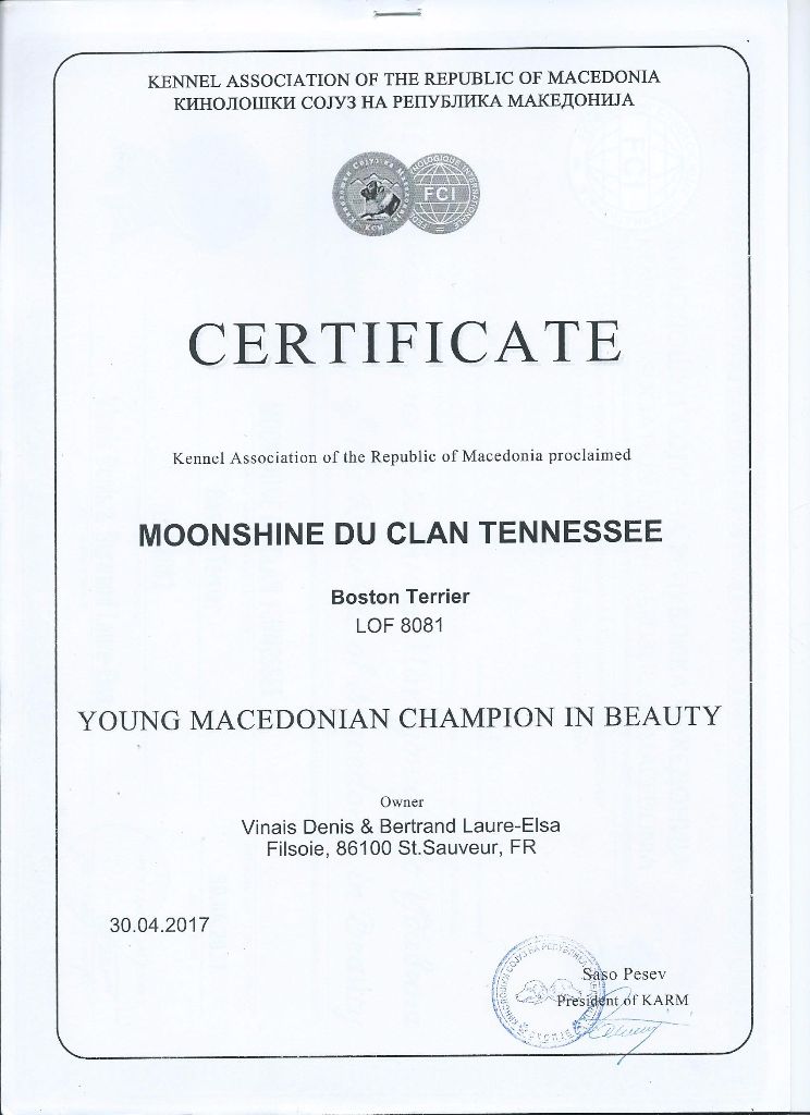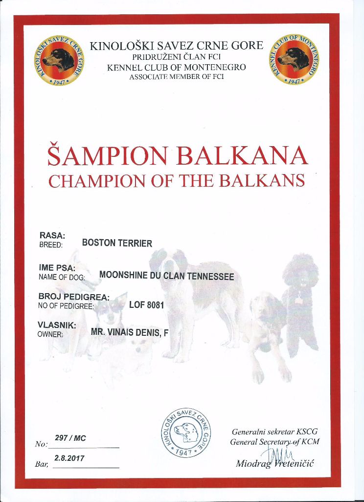 Chien Boston Terrier CH. Moonshine du Clan Tennessee