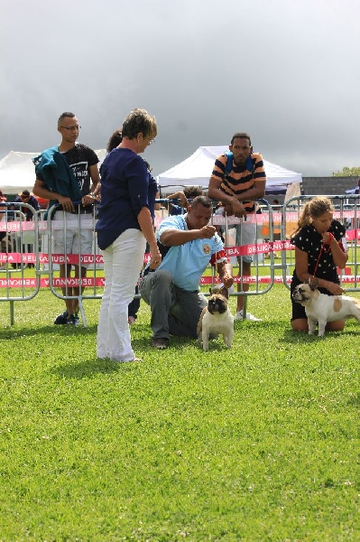 11,400kg. 38 cm. Exc format, TB tete, Exc crane, Exc port d'oreilles, B machoire, B apl avts, B Epaule, Exc poitrine, Queue vestigiale, Ang ar juste, Exc roach back, Exc ligne, Exc type.