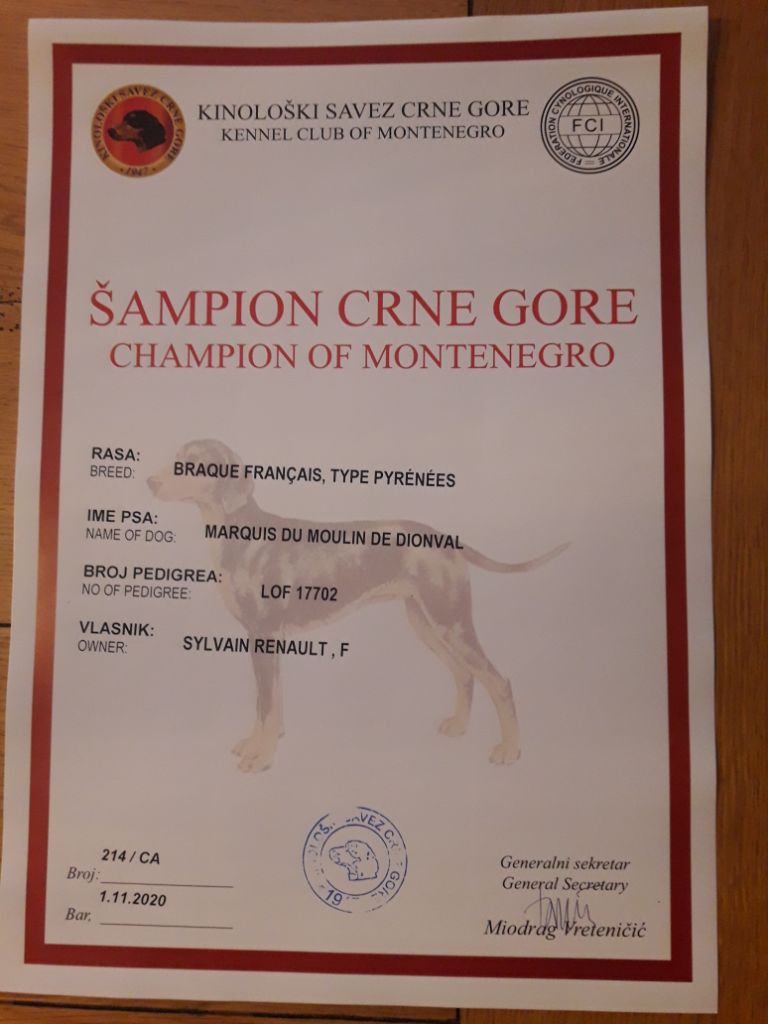 Chien Braque français, type Pyrenees (petite taille) TR. CH. Marquis Du Moulin De Dionval