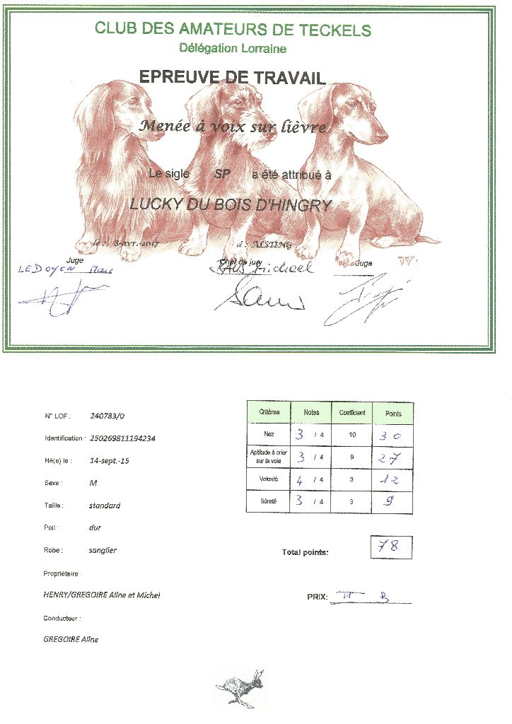 Chien Teckel poil dur Lucky Du Bois D'hingry