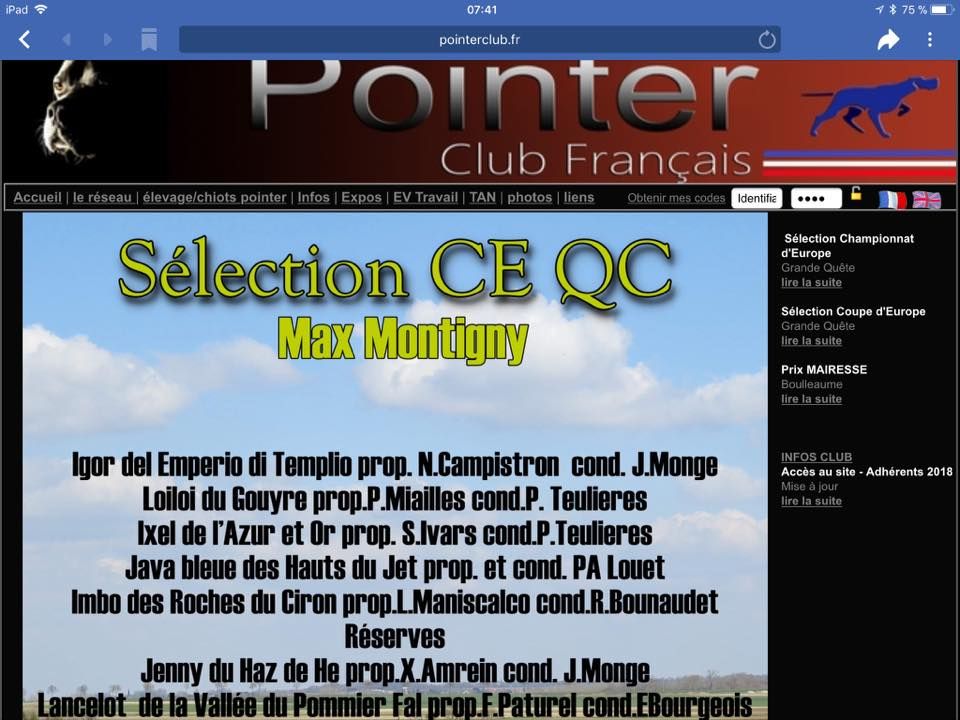 Sélection en équipe de France pour le Championnat d'Europe de quête de chasse en Serbie 2017