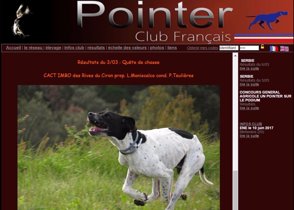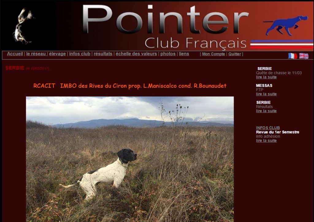 Chien Pointer TR. CH. Imbo dit solo Des Roches Du Ciron