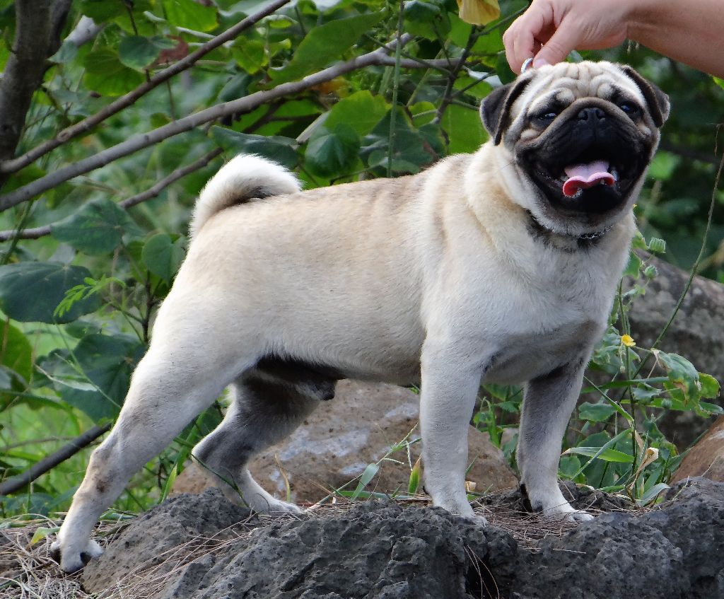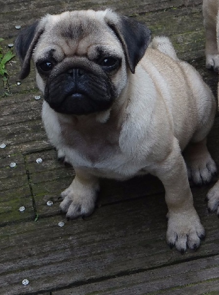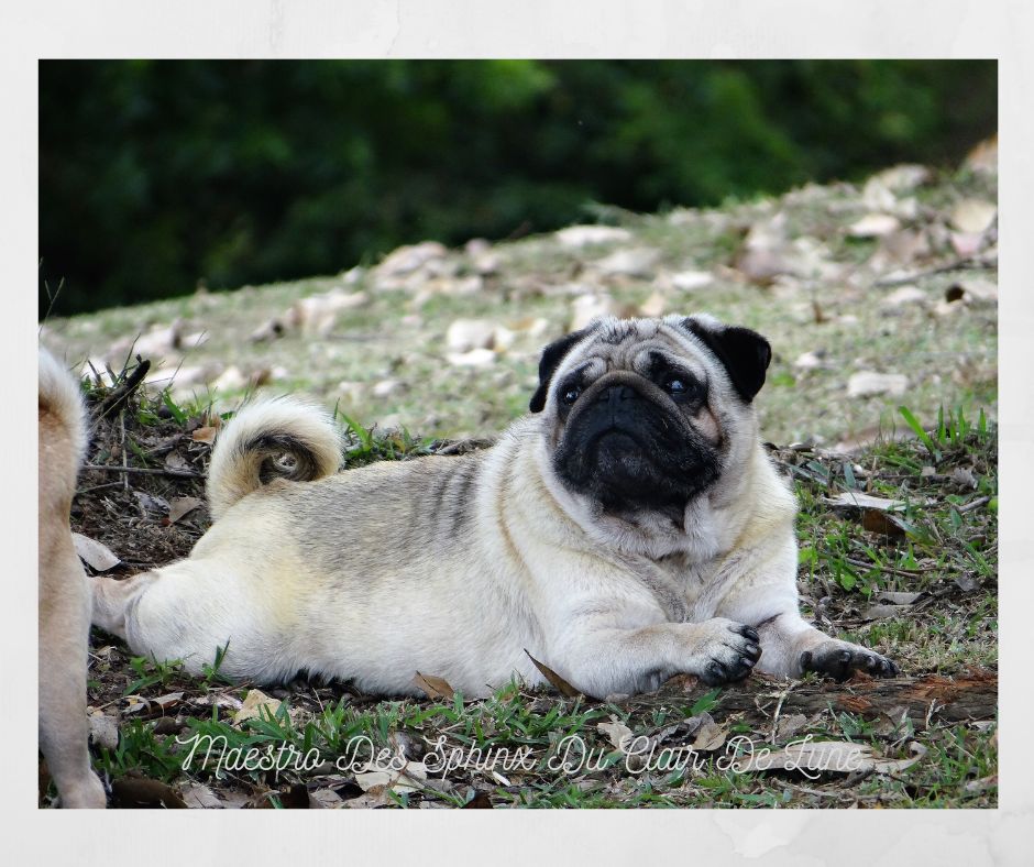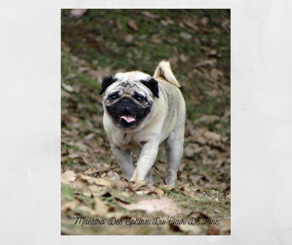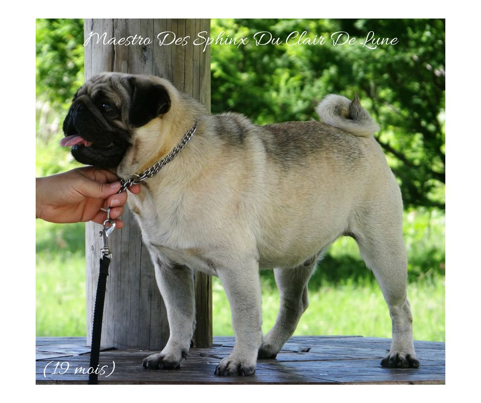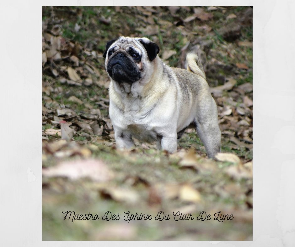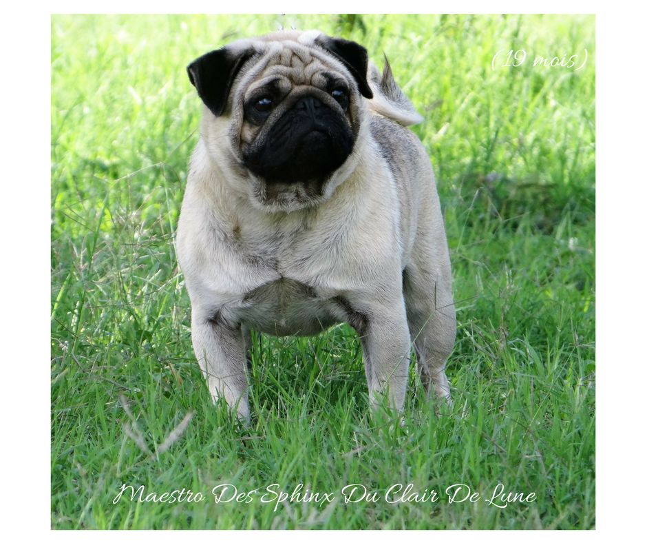 MAESTRO est un petit bonhomme bien bâti, puissant avec une forte ossature, et, d'une bonne construction, une tête et, une expression Sublimes...il restera pret de nous dans le but de conserver des qualités qui nous paraissent essentielles dans la race.
