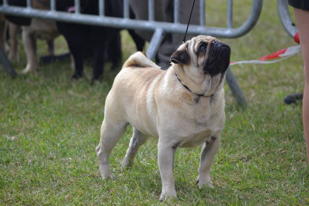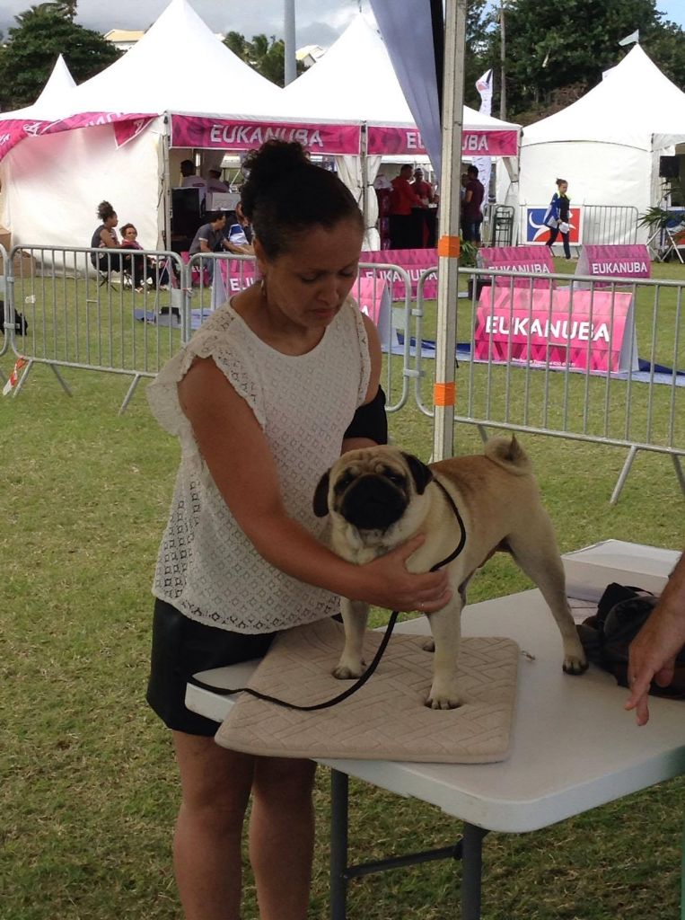 Bonne mâchoire, sujet un peu enrobé, narines bien ouvertes, oeil bien placé, très bonne attache oreilles, bon encolure, bonne attache queue, bonne poussée, mouvement avant correct.