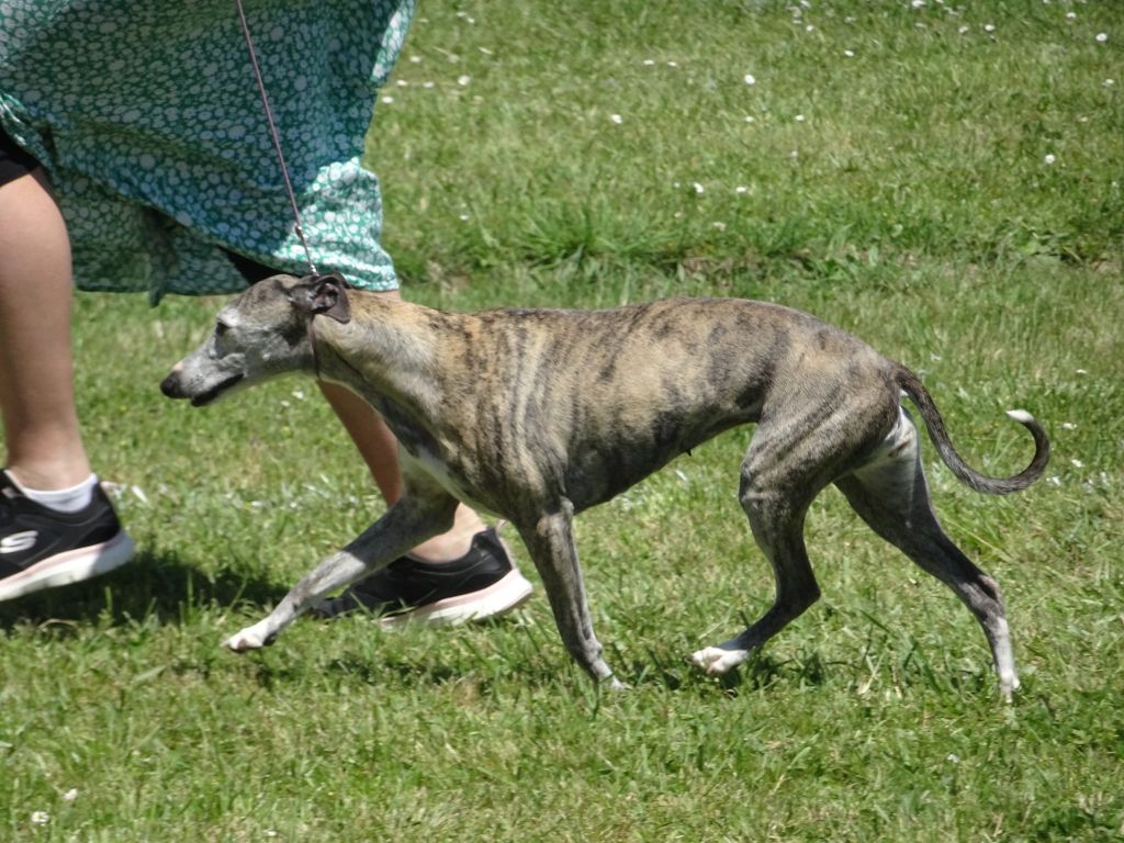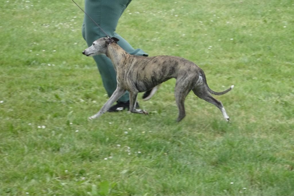 3 ans et demi.Femelle absolument féminine B. Tête. Yeux foncés.Oreilles b. attachées et portées. Dcc.B. sortie encolure + ligne dos+ croupeCorrecte posture. Pourrait avoir + d?angulation de l?arrière.