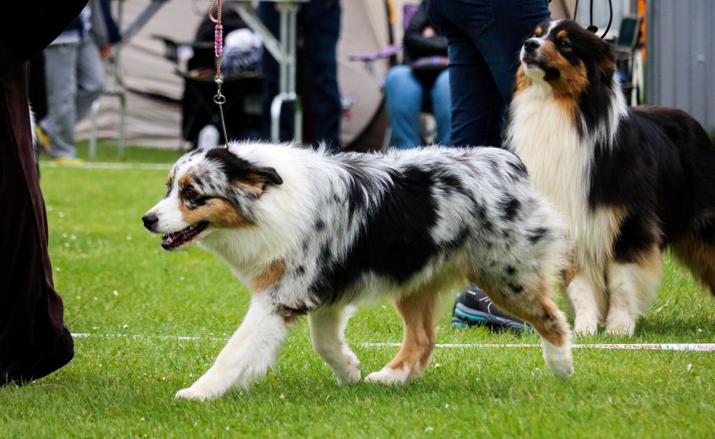 DCC - taille moyenne - bonne proportions - bleu merle - corpulence jolie et correcte - Exc aplombs - encolure moyenne - tête bien structurée - exc // - exc yeux - exc oreilles - bon mouvement