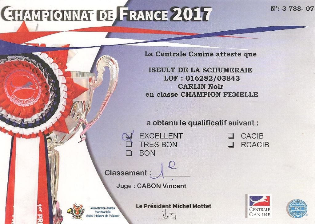 - CACL CACIB BOS Luxembourg 2018 (Qualifiée CRUFT 2019)