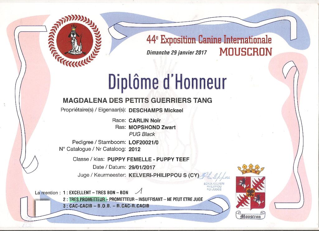 - Meilleur de Race Puppy Mouscron 2017 (Belgique)