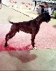 Bringé sur fond cuivre marqué de blanc 63cmde const parfaitement carrée et élégante bon typ de tête avec tb rapport crâne museau stop et menton bien marqués joli dessin de babines museau cubique et plein mais chanfrein un peu court oeil bien sombre un peu ouvert crâne fort mais sec encolure puissante et éléganteexc ligne dos avec garrot marqué tb dessous avec poitrine presque aux coudes ang av/ar en ordre