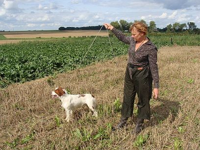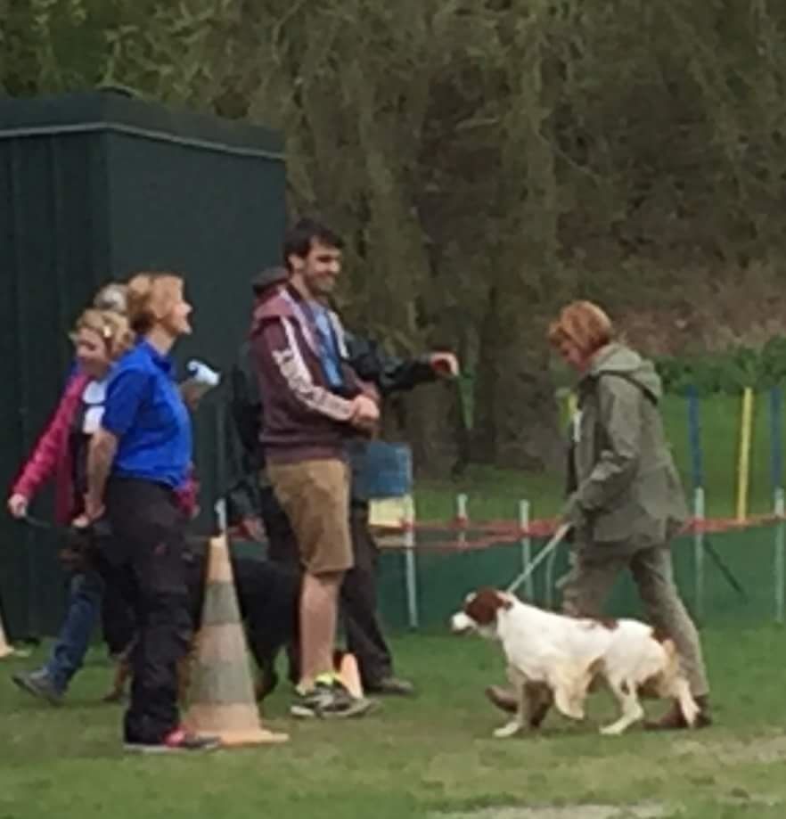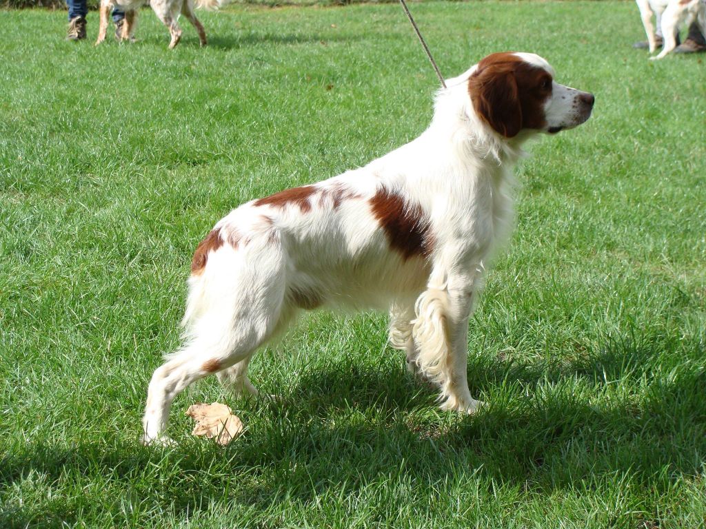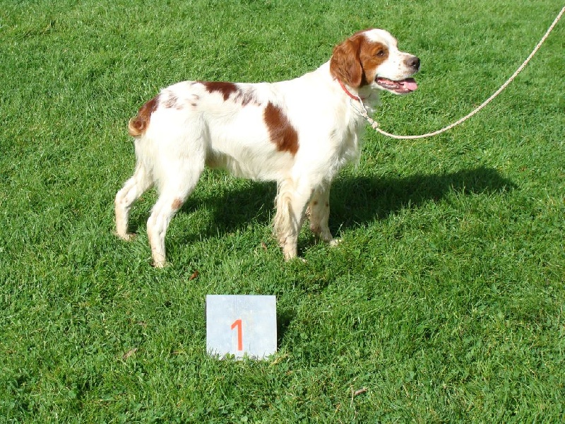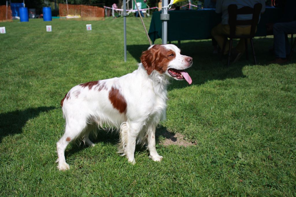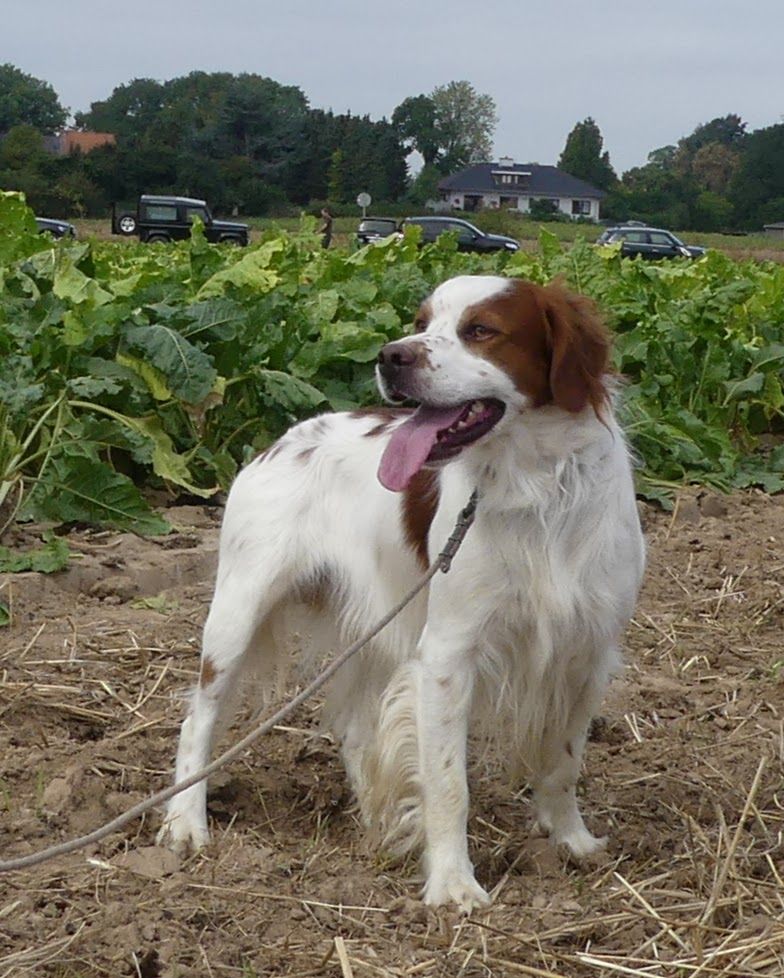 Okay du Bois de Buiseret, Epagneul Breton propriétaire et conductrice Muriel Vermeer (B) Chien qui possède beaucoup d?os, très structuré, moins d?ampleur bien étendu sur le terrain. Prend un premier point parfait. Prend un 2e point un peu appuyé. Belle expression