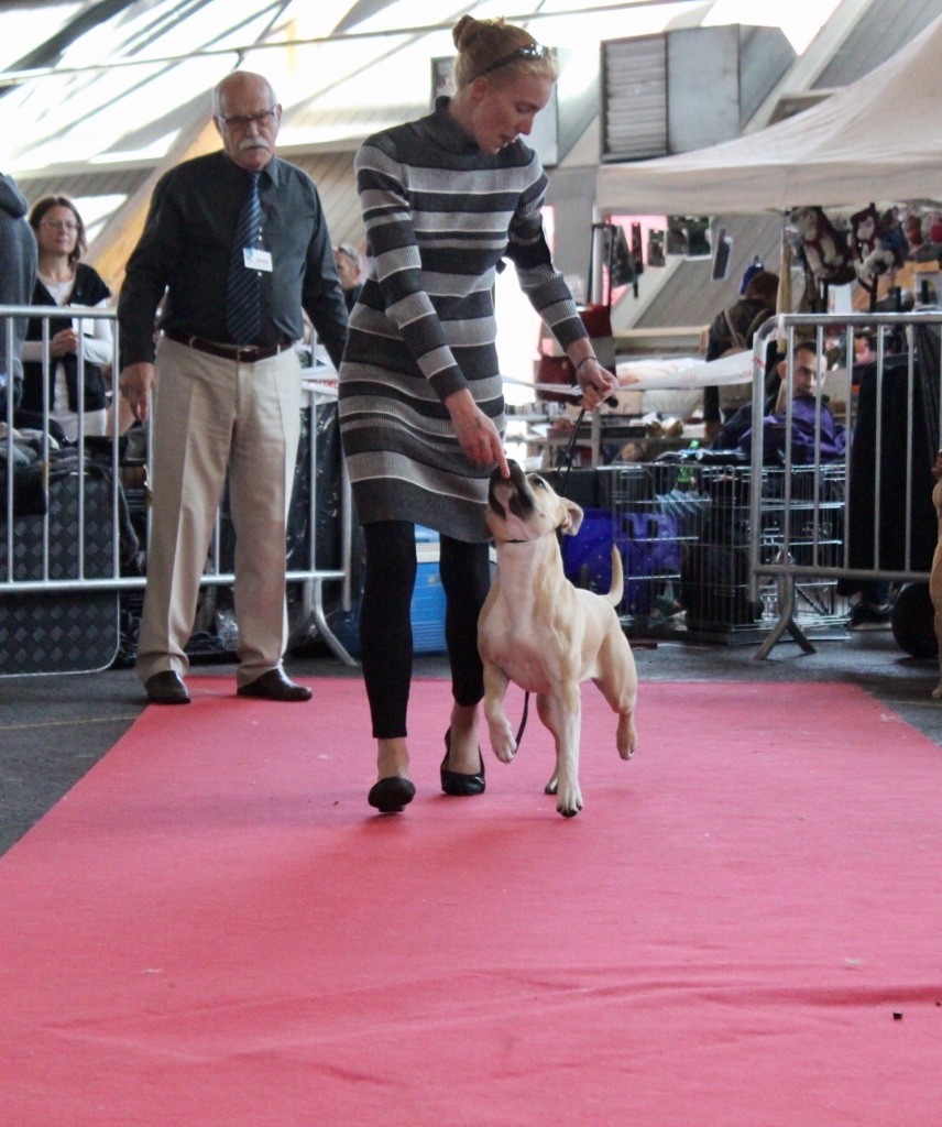 Classe puppy:La + jolie chienne, Belles proportions + Beaux aplombs et pieds. B. angulations arrières. Jolie tête avec B. articulé. Démarche correcte.