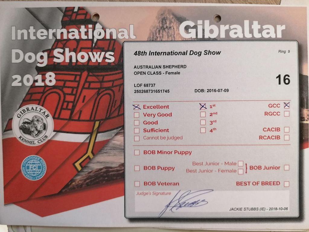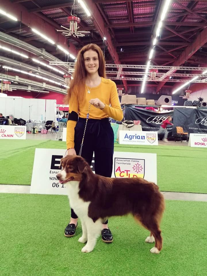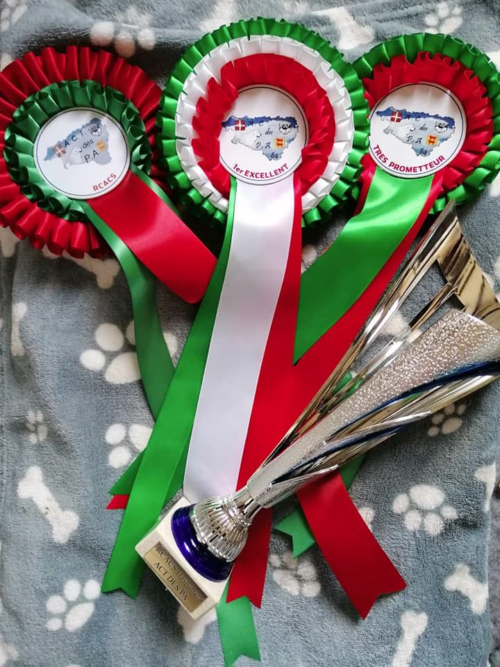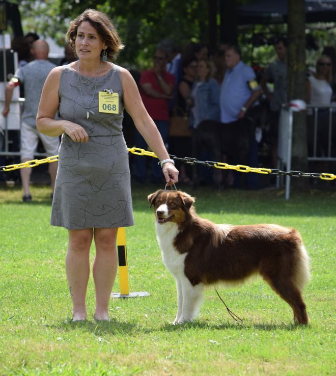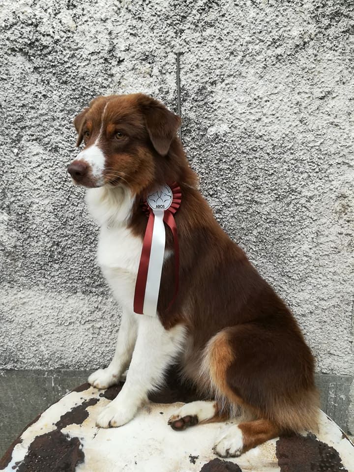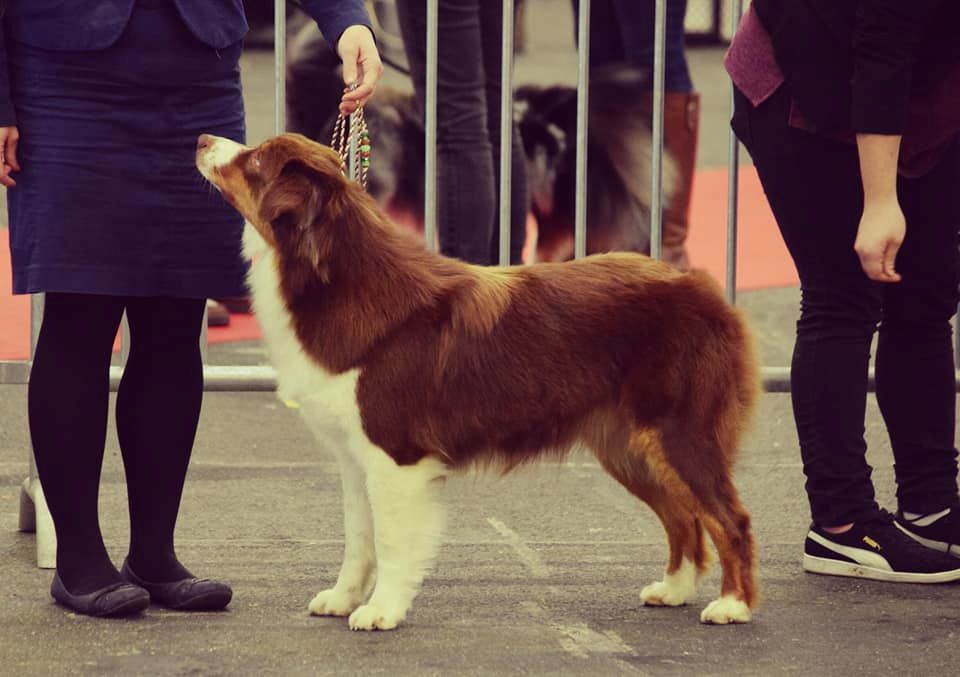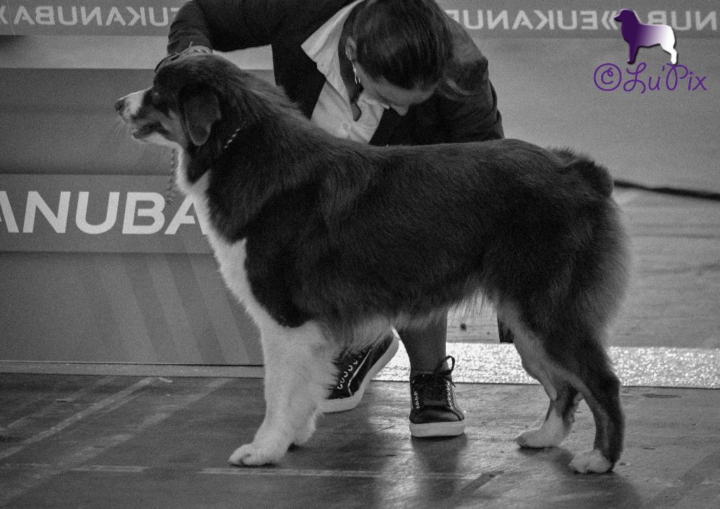 Sujet bien proportionnéTête féminine, DCC, excellente forme d'yeux, excellent port d'oreilleBelle encolure, excellente ligne dos/rein/croupe. Très bonne angulation avant et exc angulation arrièrebelle ossature, excellent pieds et aplombsTrès bonne fourrureExcellentes allures et caractère.