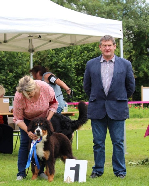 DCC -EXC cont d'ensBelle ligne de dessusEncolure suf - jolie têteStop suf marqué - TB largeur de crâne pour l'âge - EXC oeil forme et couleurEXC ossature - ouvre lég de l'intérieur - EXC poitrine pour l'âgeBelle angulation et croupeSe dép bien de profil se désunit un peu dans son avant.