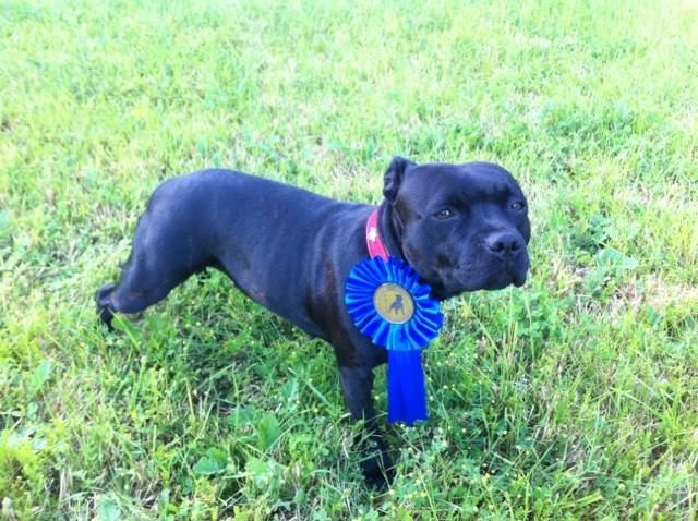 Chien Staffordshire Bull Terrier Henza de la griffe du diamant bleu