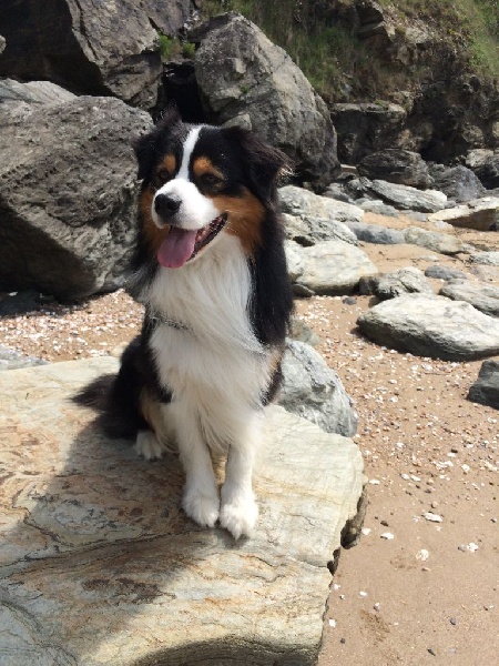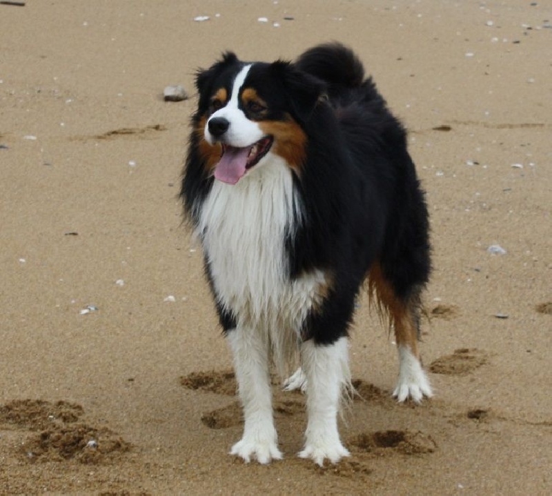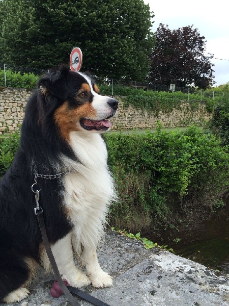 "Ioko est un chien adorable, très sociable il aime tout le monde : les humains et les 4 pattes. Il nous suit partout, il est très facile à vivre. C'est un excellent gardien, Ioko est un chien posé à la maison et surtout très câlin, il est à la recherche de toutes les caresses possibles. Ioko a l'instinct protecteur avec les enfants et il a une grande patience avec eux ! Il fait partie des australiens qui sourient et on adore ça. Il pratique l'obéissance en club canin et cherche toujours à nous faire plaisir, il comprend très vite, il a été facile à éduquer. Il fait également un peu d'agility. Il adore tous les types de sorties en campagne, en forêt et il s'éclate au bord de l'océan. Et il est où le bonheur ? Il est là avec notre Ioko."