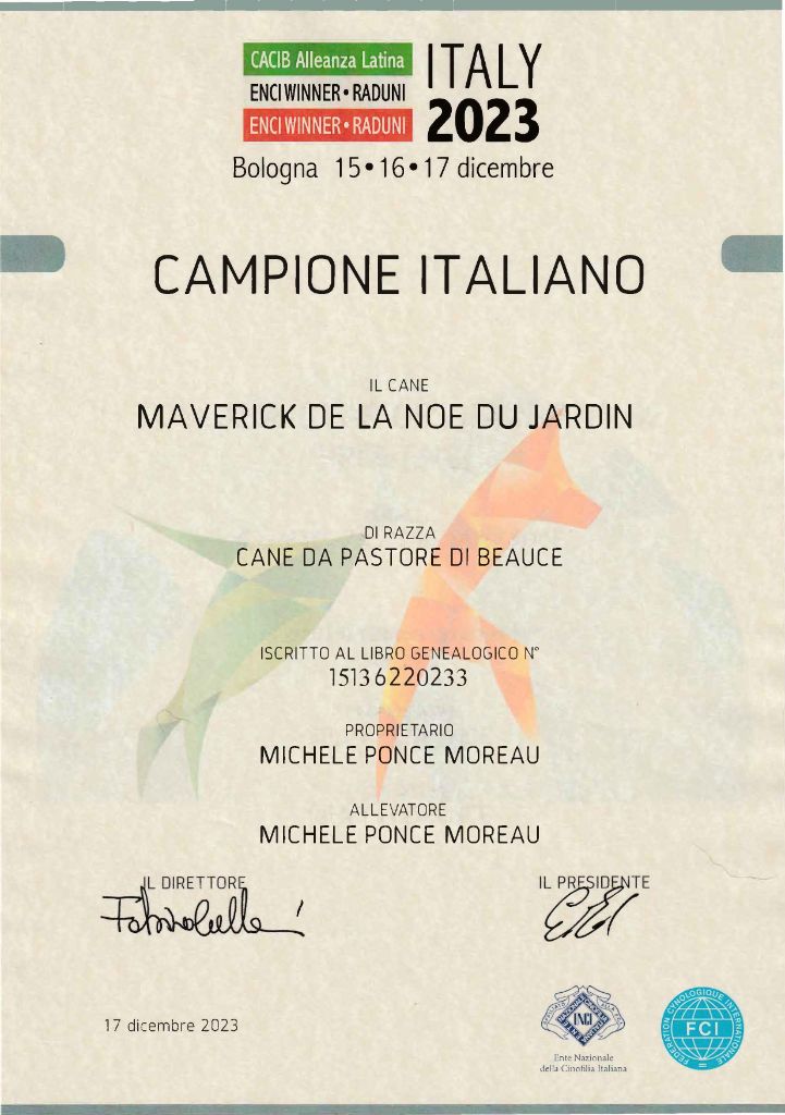 Chien Berger de Beauce CH. Maverick De la noé du jardin