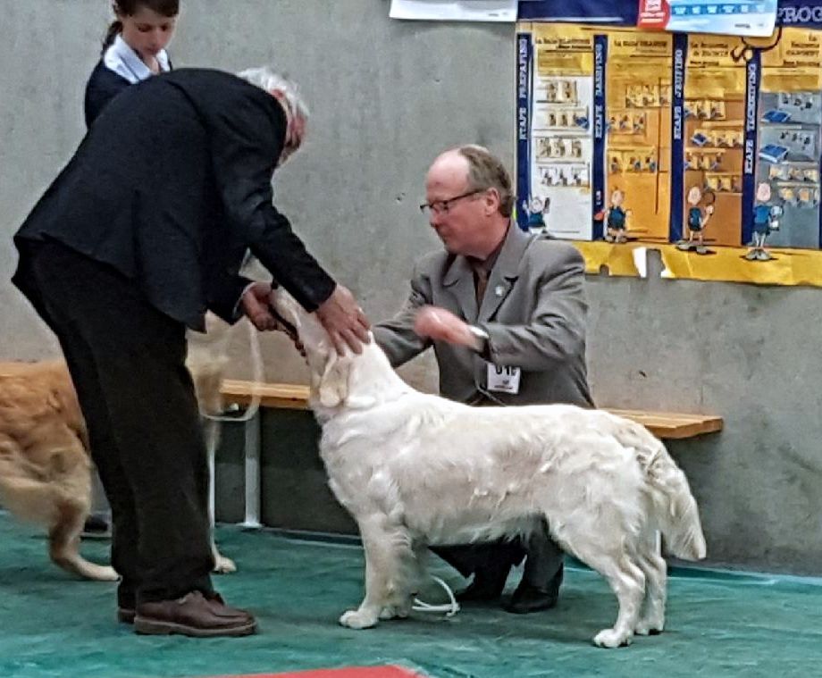 Thank you for showing me puppy of such high quality. This young dog has a really body is necessary for a good show carrier. Perfect anatomy et typical friendly caracter. I fall in love to quality of this puppy. Congratulation to owners et breeders.Merci de m'avoir présenté un chiot de cette qualité. Cette jeune chienne a réellement le potentiel nécessaire pour faire une bonne carrière en expo. Anatomie parfaite et caractère amical typique. Je suis tombé amoureux de la qualité de ce chiot. Félicitations aux propriétaires et aux éleveurs.