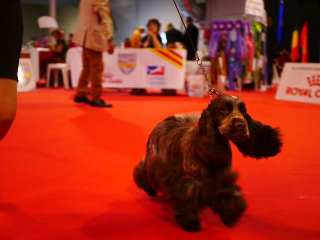 Jolie petit modèle fémininExcellente pigmentation, excellente couleurExcellentes angulations avant, arrière et poitine. Excellente qualité de fourrureTrès bonne ossatureExcellent mouvement très cocker