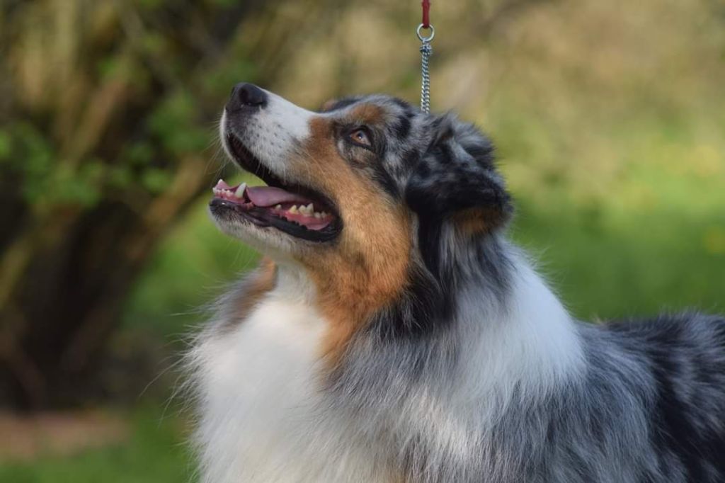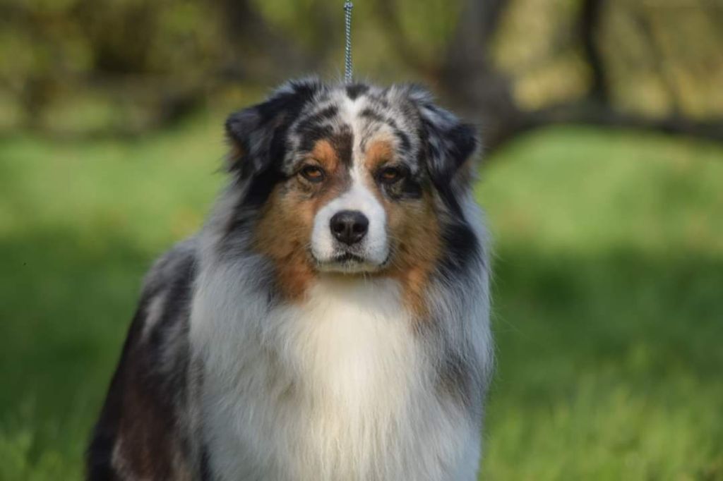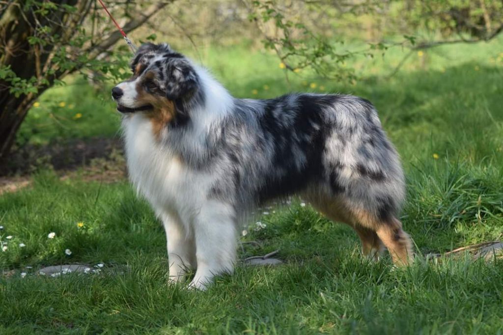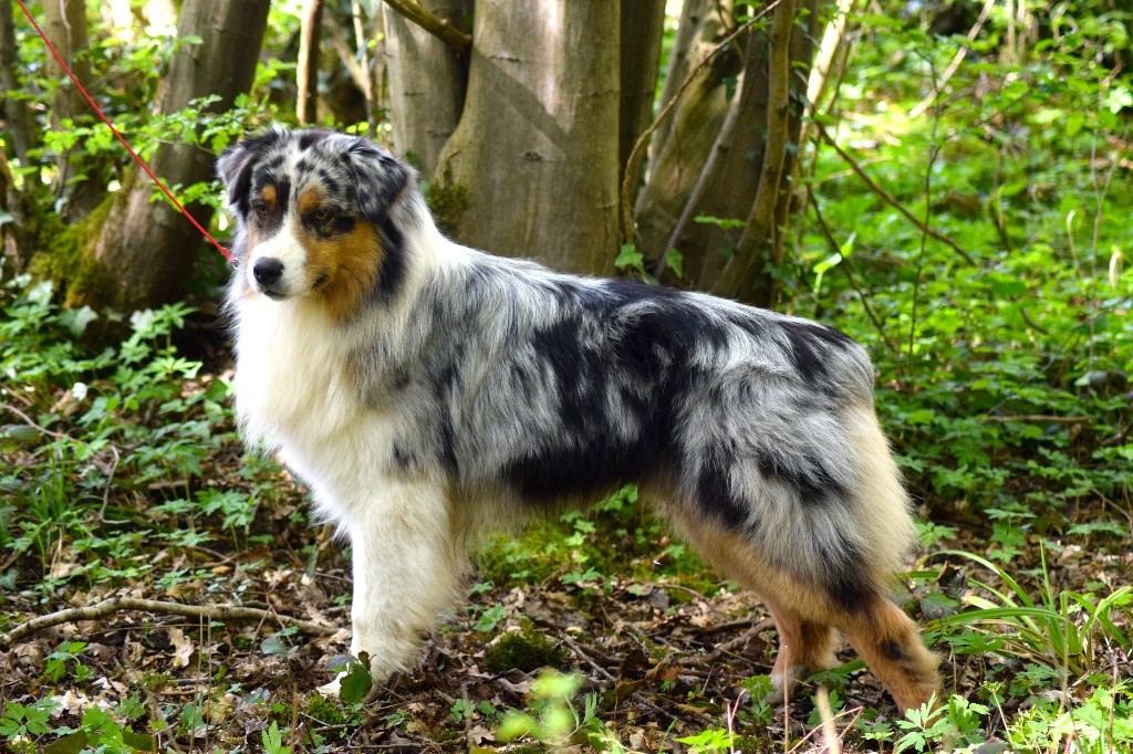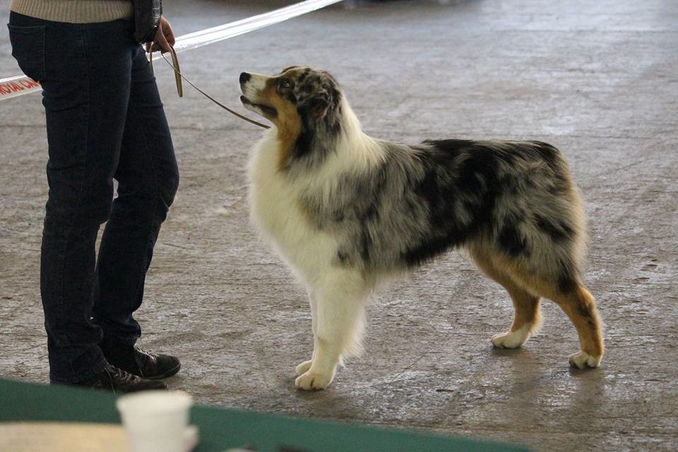 CLASSE intermédiaire : 3 chiens présents: Bleu merle , jolie tête, exc expression , exc présentation , bonne silhouette , l'encolure pourrait être + longue. Encore très jeune d'aspect, bonne épaule, il faut qu'il se remplisse.