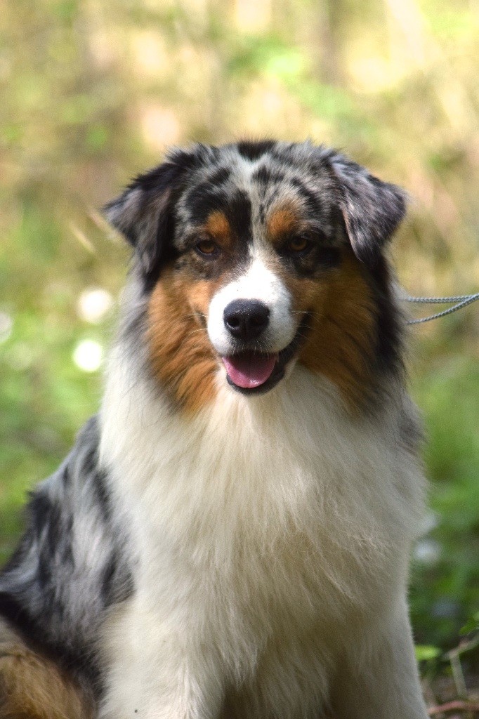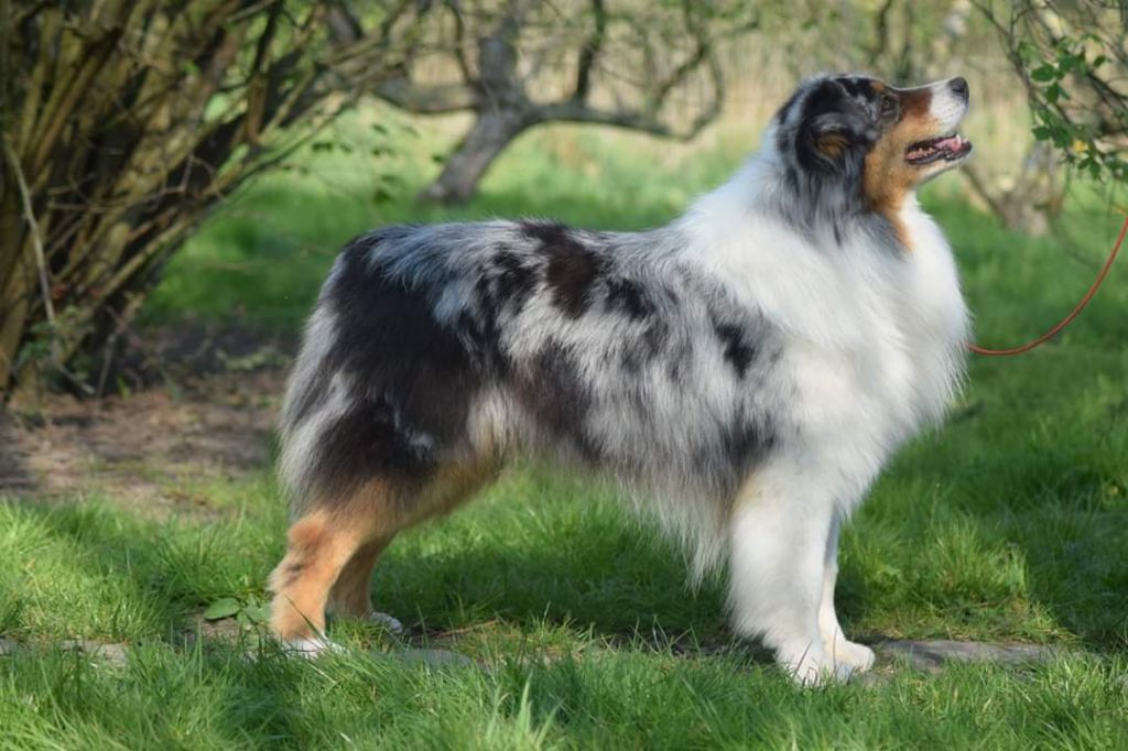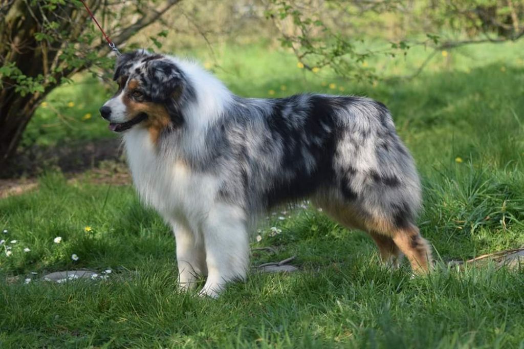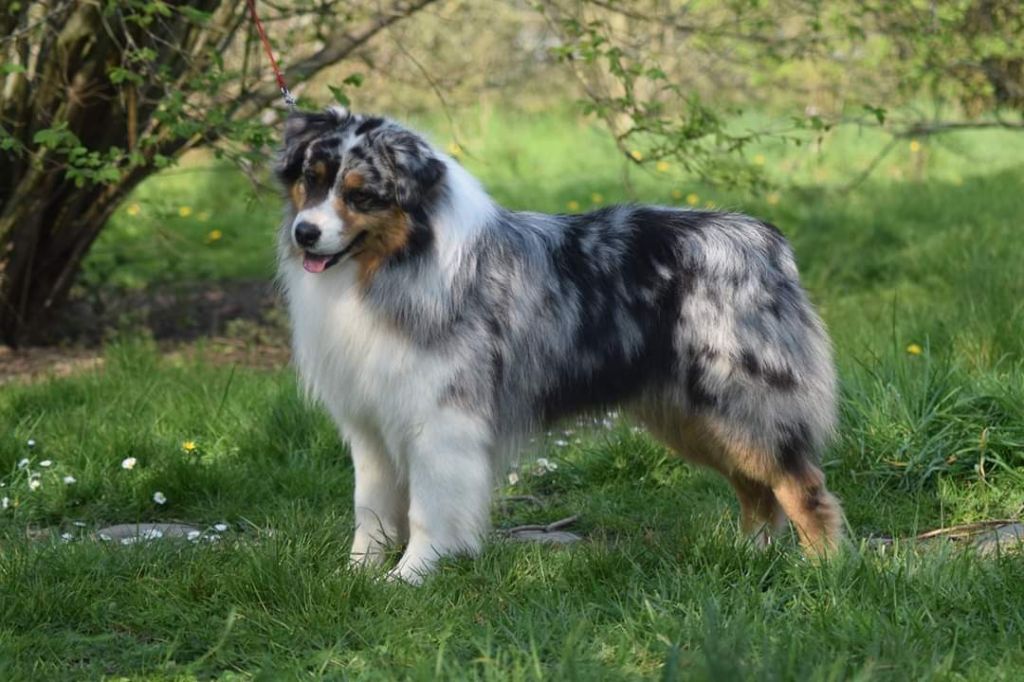 CLASSE intermédiaire : 3 chiens présents: Bleu merle , jolie tête, exc expression , exc présentation , bonne silhouette , l'encolure pourrait être + longue. Encore très jeune d'aspect, bonne épaule, il faut qu'il se remplisse.