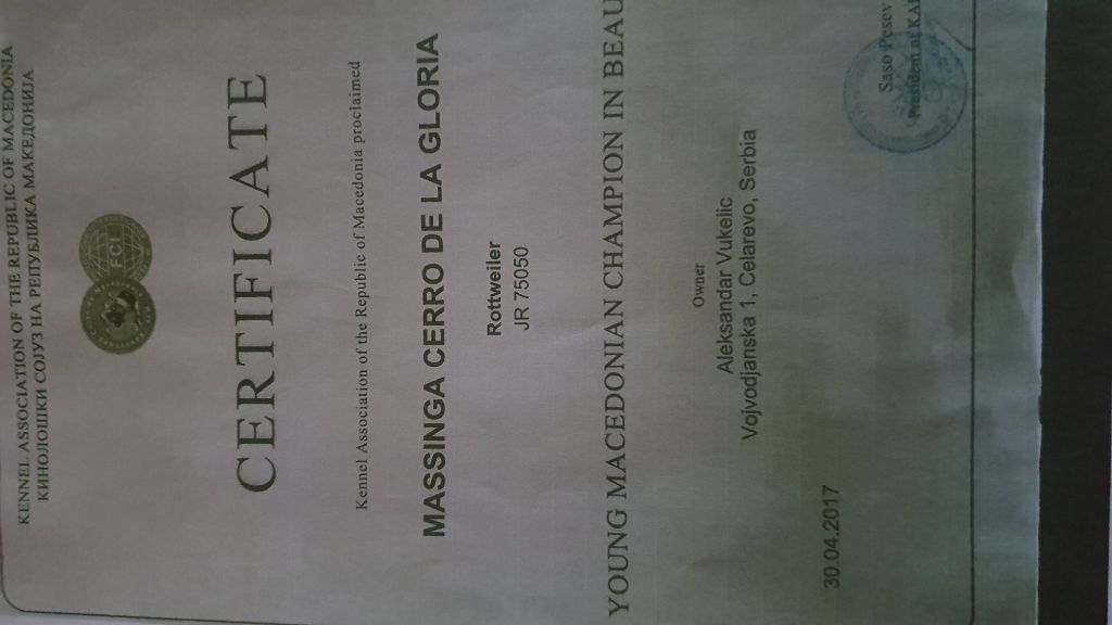 Chien Rottweiler Massinga Cerro de la Gloria