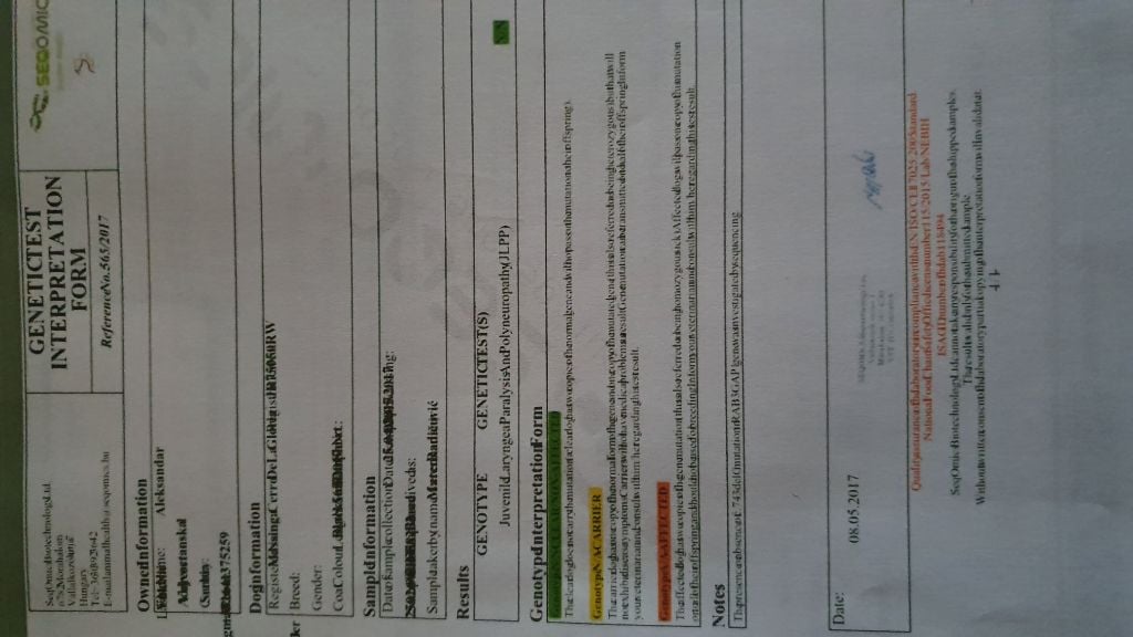 Informations sur le chien