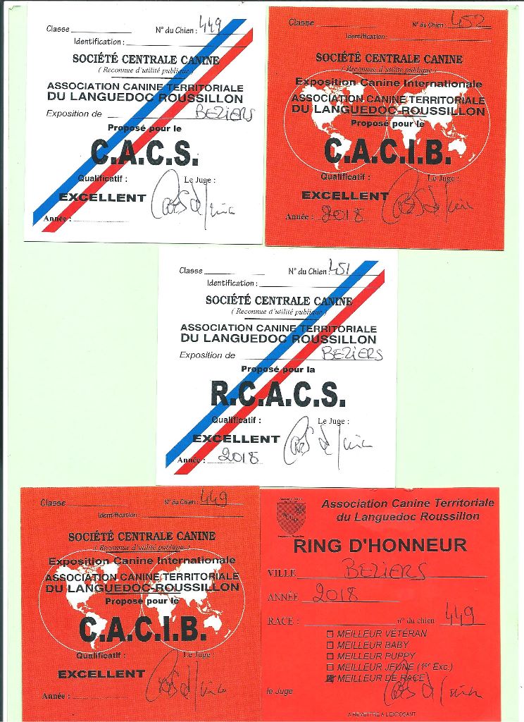 - 7 CACIB & BOS EN FRANCE & AU MONTENEGRO & EN ESPAGNE & EN SUISSE.