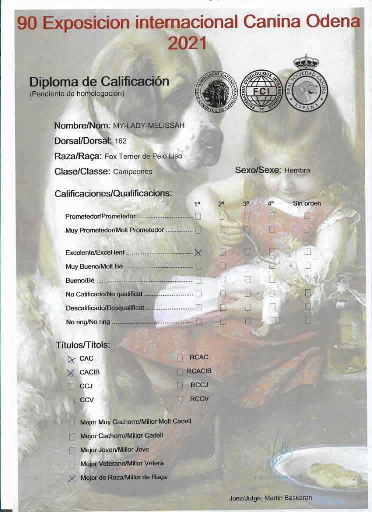 - 1ER EXCELLENT CACIB & BOB ( MEILLEURE DE RACE ).
