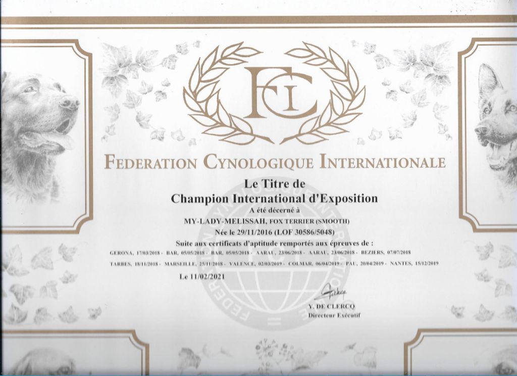 Manifestion : HOMOLOGATION F C I . - Juge : F C I .