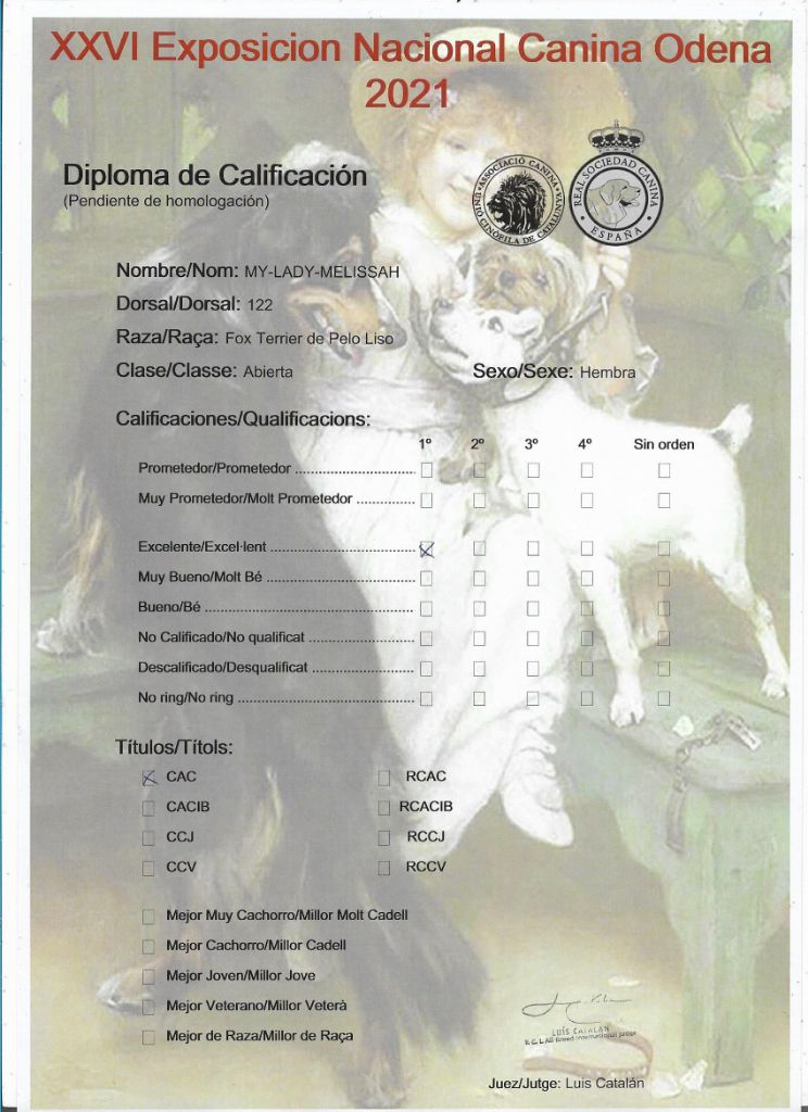 Manifestion : SPECIALE DE RACE FOX TERRIERS - Juge : M SOTOCA DE SANTOS ANGEL ( ES )