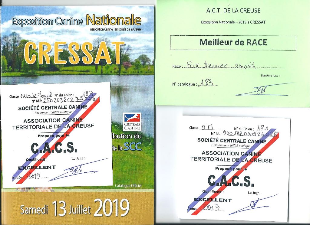 1ER EXCELLENT MEILLEURE DE SEXE OPPOSE C A C S & B O S A L'EXPOSITION CANINE NATIONALE SPECIALE FOX DE SAULIEU 21.LE 10.06.2018.