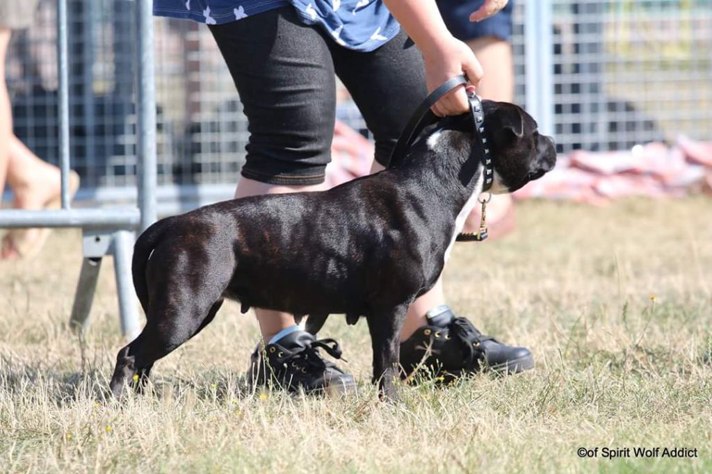 Black Brindle Bitch, Good Balanced, Good Head Shape, Teeth ok, Good Front, Level Top Line, Good Back end Infit Condition.