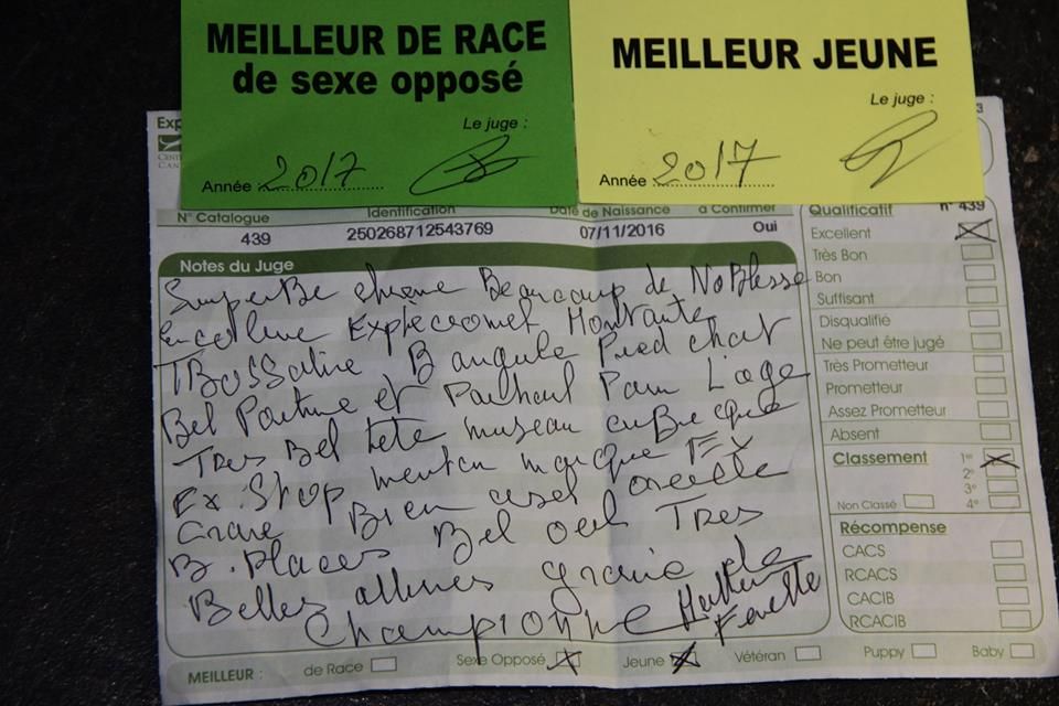 - 1er Excellent * Meilleur Jeune * Meilleure femelle * BOS * Confirmation LOF