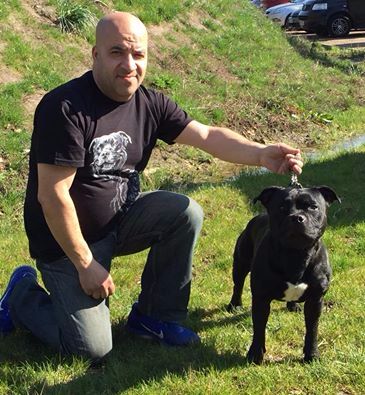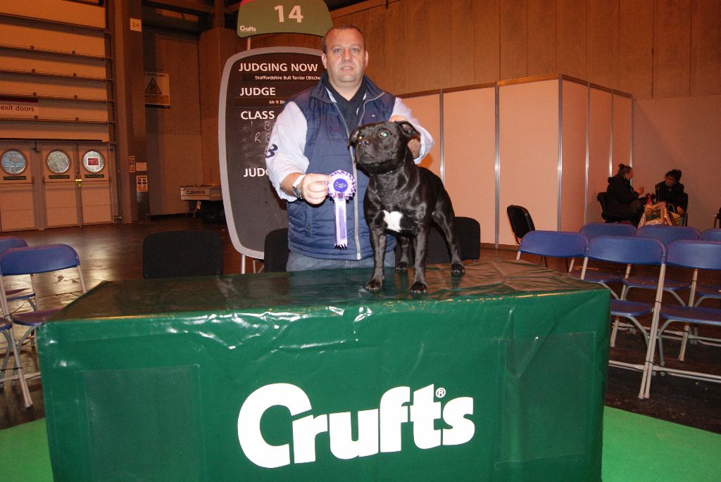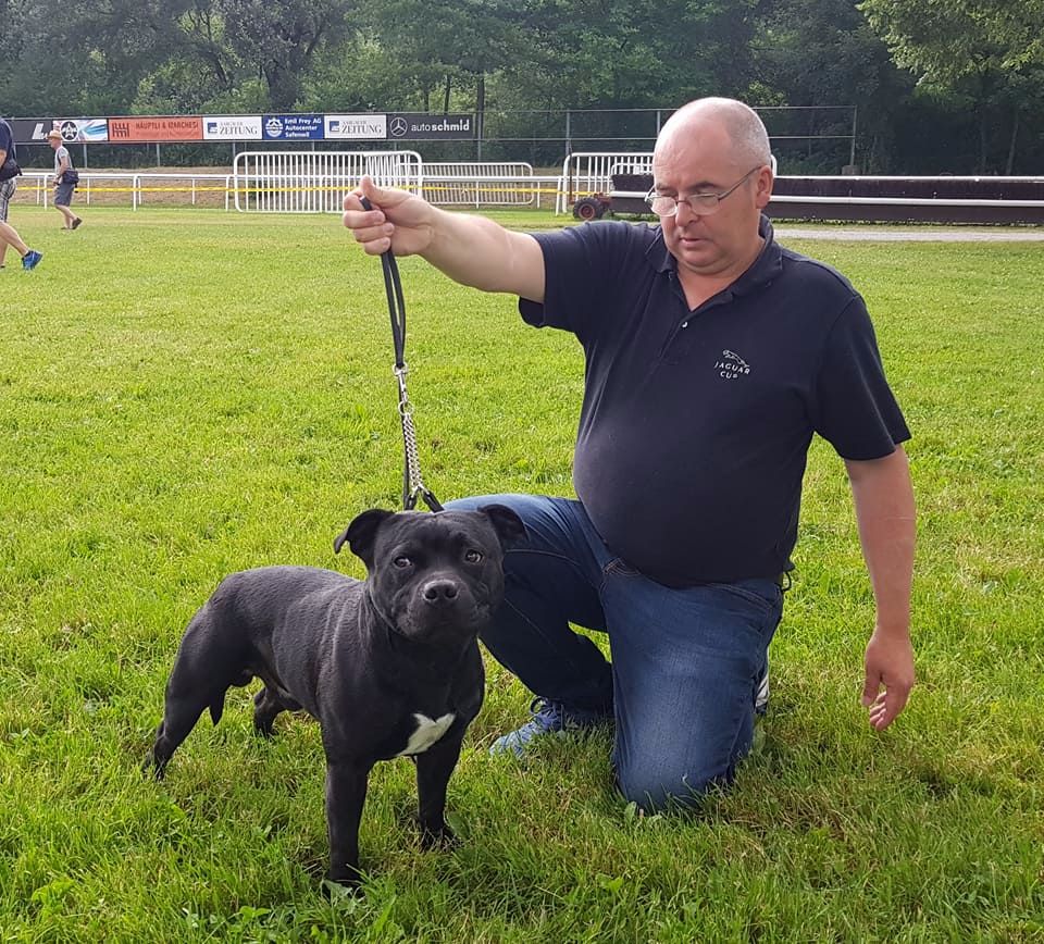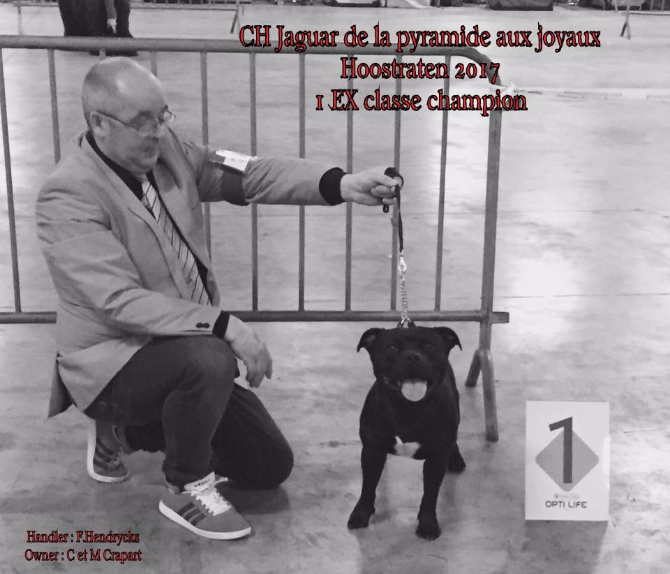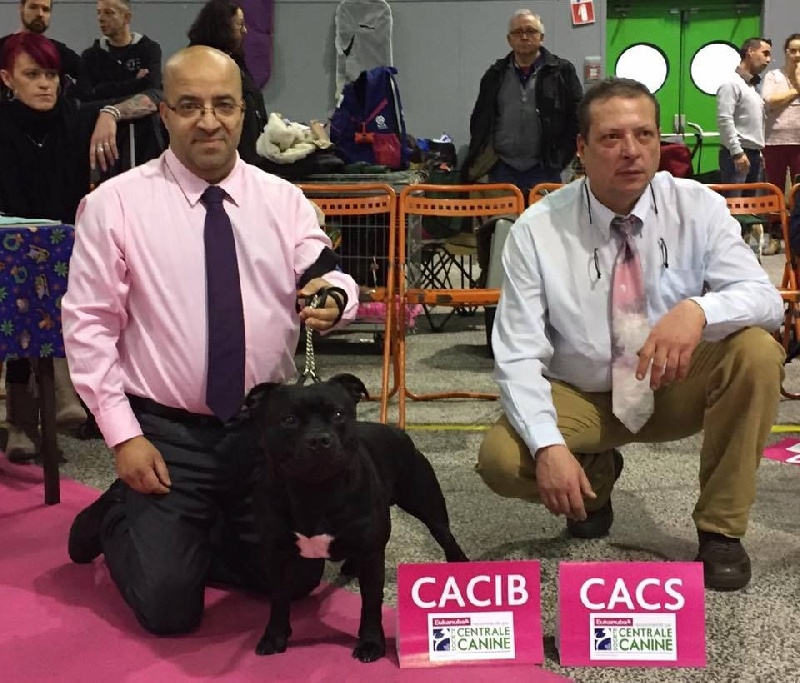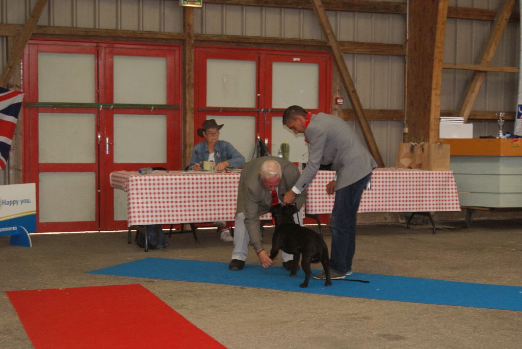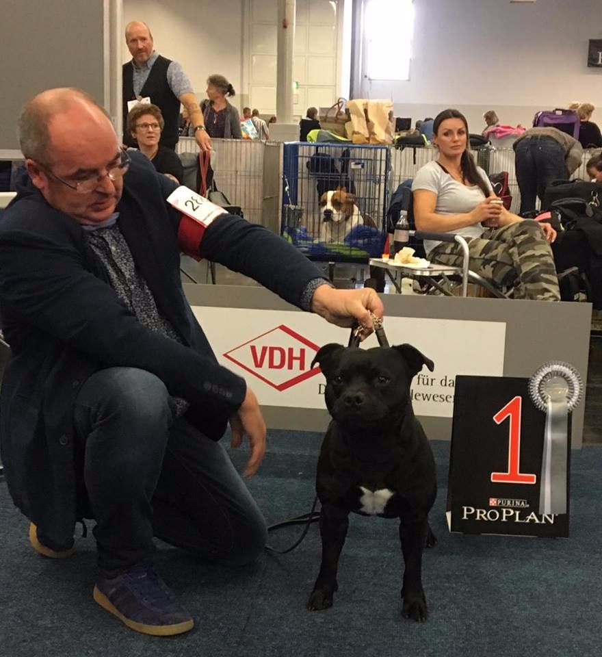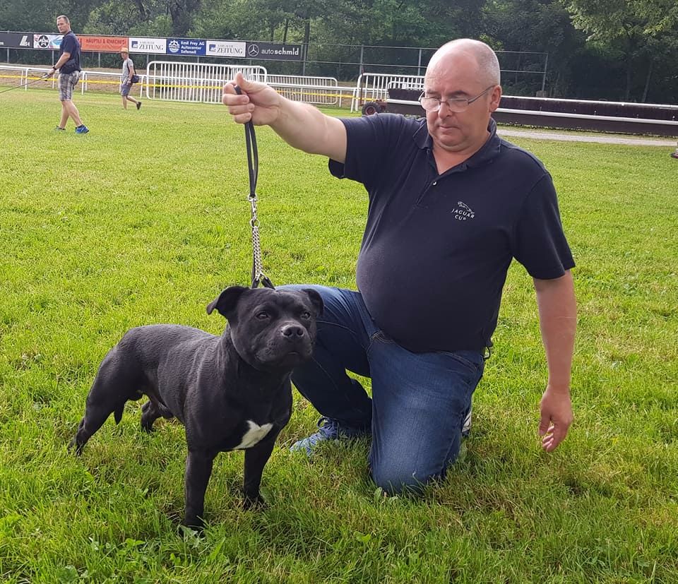 handler et propriètaire : Christophe.C ils terminent ensemble : 1ex champion meilleur mâle meilleur staffie sur 77 merci aux juges MR triqueneaux et Mr madden
