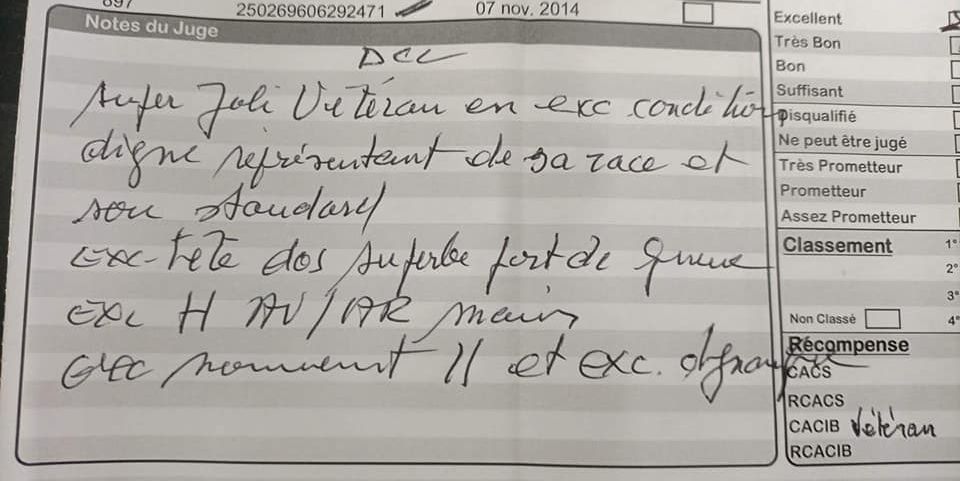 - 1 EX CACIB VETERAN ET BEST VETERAN