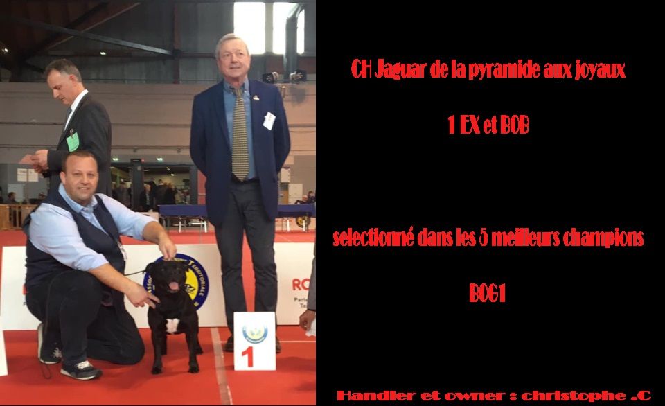 handler et propriètaire : christophe .C 2eme jour d expo , christophe et jaguar meilleur champion meilleur mâle meilleur de groupe 3 best in show sur 642 chiens presents merci aux juges : mr madden mr triqueneaux, mr lechenne et mr Barenne d'avoir appréciés les qualités de jaguar