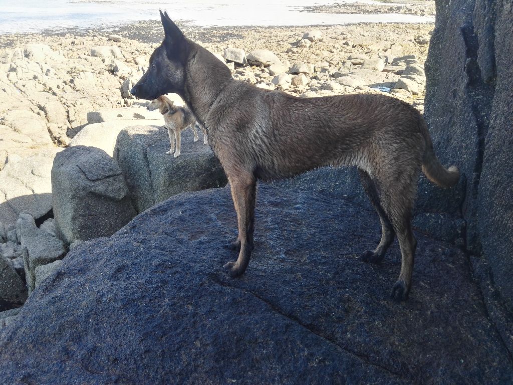 Chien très sociable envers l'Homme, très a l'écoute dans le travail. Bien charbonné