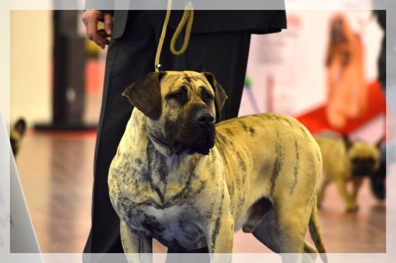 Bien musclé, bien proportionné, tête bien typée, excellente structure, encolure bien forte, dos ferme, poitrine large, exc épaule et pieds.