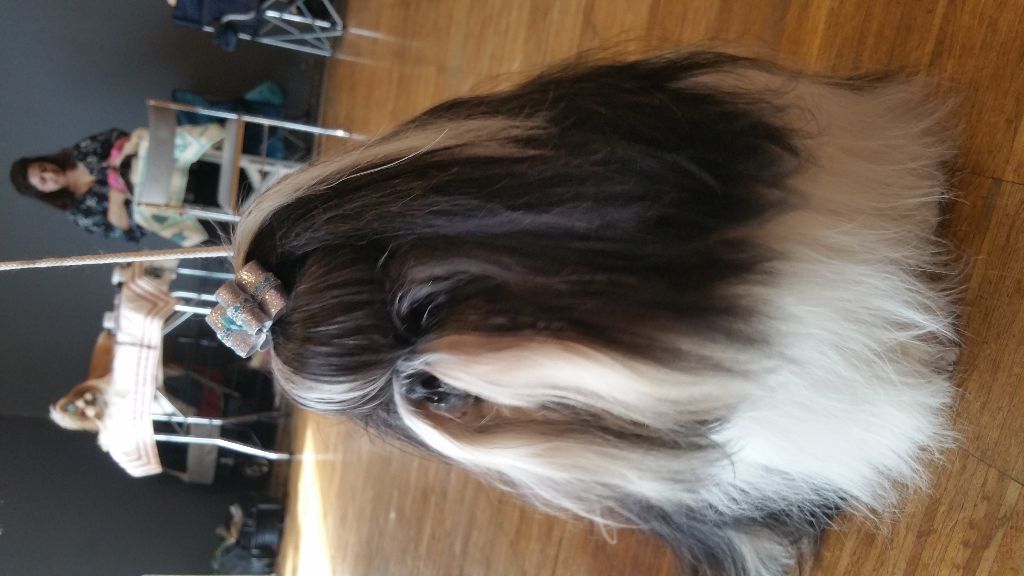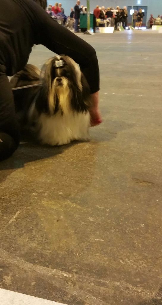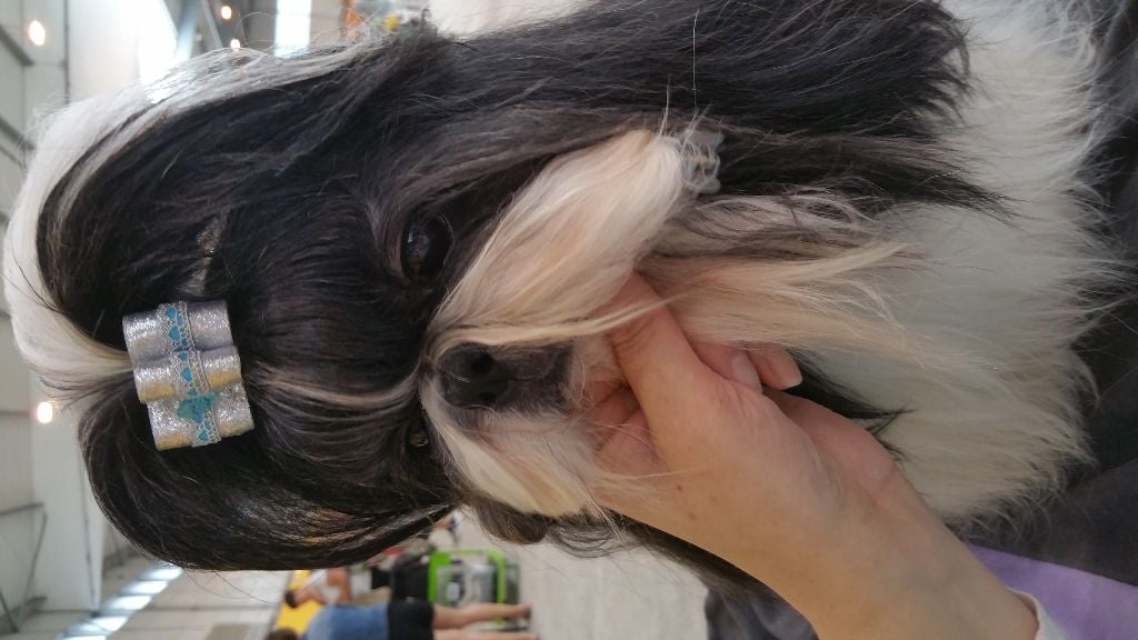 Excellent sujet dans l'ensemble, exc proportions, exc crâne , exc profil, exc pigmentation, exc denture, exc av main, exc encolure poitrine et TB ligne de dos, exc postérieur et attache de fouet, exc qualité de fourrure, exc démarche