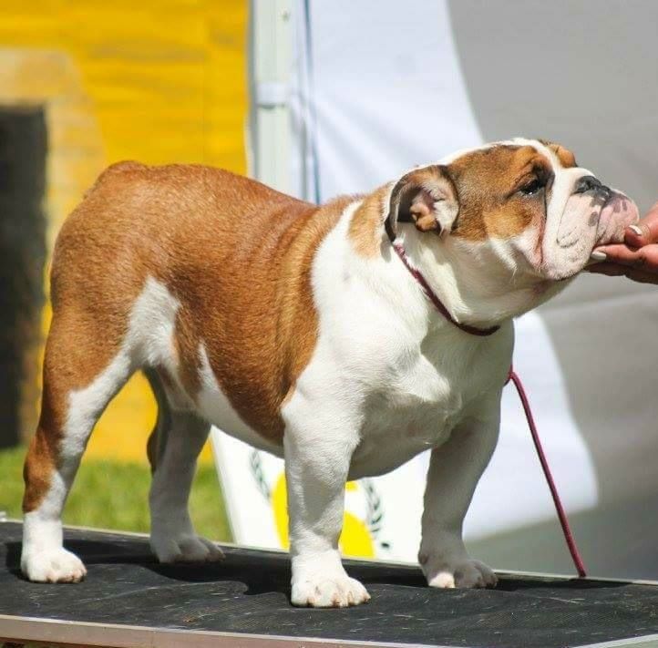 Zakari est conforme au standard de la race, il a de l'ossature, un corps court et compact, une très jolie mâchoire, une belle tête en brique comme le standard le veut, des narines bien ouvertes, les oreilles en roses bien implantées,une belle descente de poitrine, épaules bien rapportées, très bon dos, les jarrets sont conforment, bons pieds, bonne respiration, très belles allures, un chien tonique et sportif. Il trace beaucoup de ses qualités sur ses chiots.A nouveau nous sommes très fières d'acquérir un nouveau mâle de chez Denise et Davis LEES affixe MELLOWMOOD qui nous donnent la possibilité et leur confiance de travailler directement leurs superbes lignées, en effet Zakari est le petit fils de la grande CHAMPIONNE, BOY 2011 CH. MELLOWMOOD ONE IN A MILLION, un grand élevage Anglais qui a prouvé plus d'une fois leur grande qualité de beauté et de santé de leurs Bulldogs. Zakari ressemble énormément à sa grand-mère, puisse-t-til lui faire honneur!
