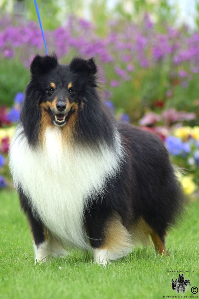 Tricolore très masculin. Expression virile. Bel oeil un peu clair. Ossature puissante. Excellente angulation. Fouet très juste. Poitrine bien descendue, rein court.Taille idéale.Ecrase et plonge un peu à l'avant.