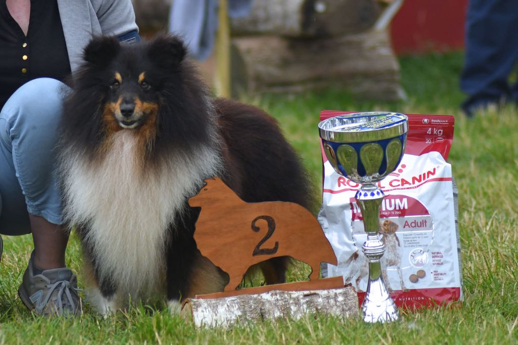Classe OuverteBon grand gabarit. Tout en fourrure. Bonne ligne de dessus et poitrine. Bonne angulation arrière. Manque de menton, l'oeil est trop oblique et trop ouvert. Oreilles un peu écartées. Mouvement manque d'amplitude.