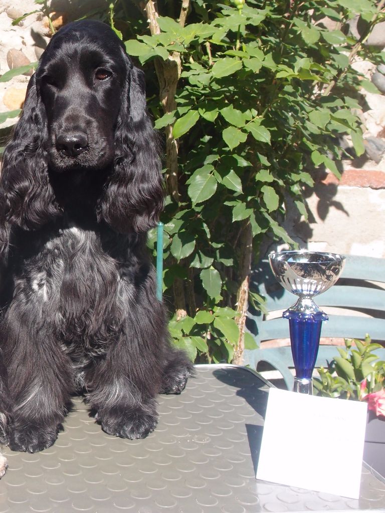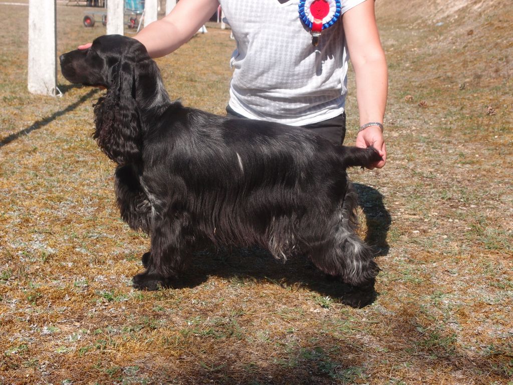 Bon gabarit mais pourrait avoir plus d'ossature. Le poil un peu fin. Belle tête. Avant-main bien parallèle. Joli modèle de la race. Le mouvement est bien libre.