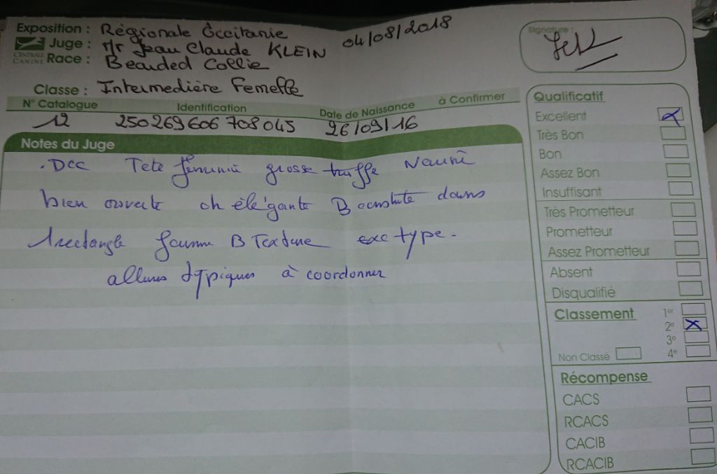 - 1ère EXC Meilleur Jeune et Meilleure de Race