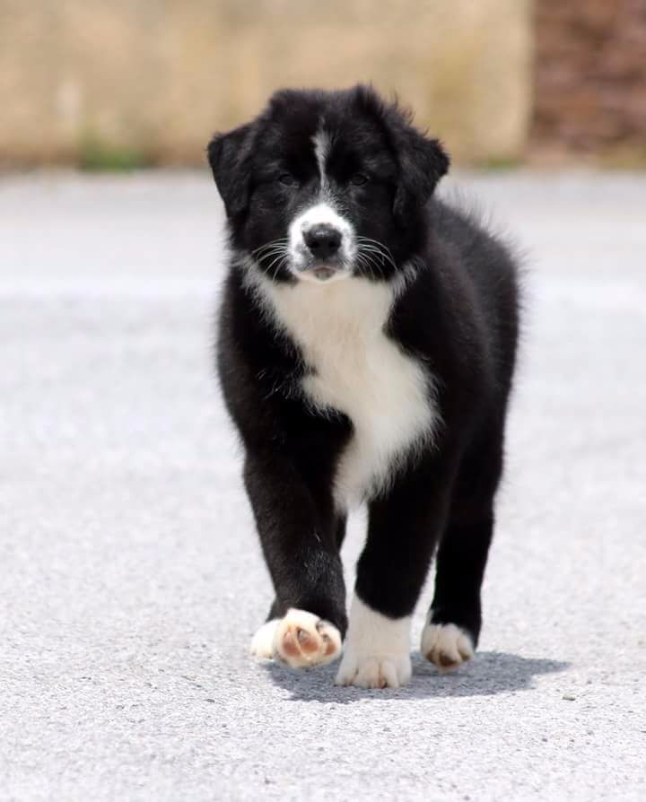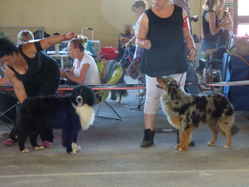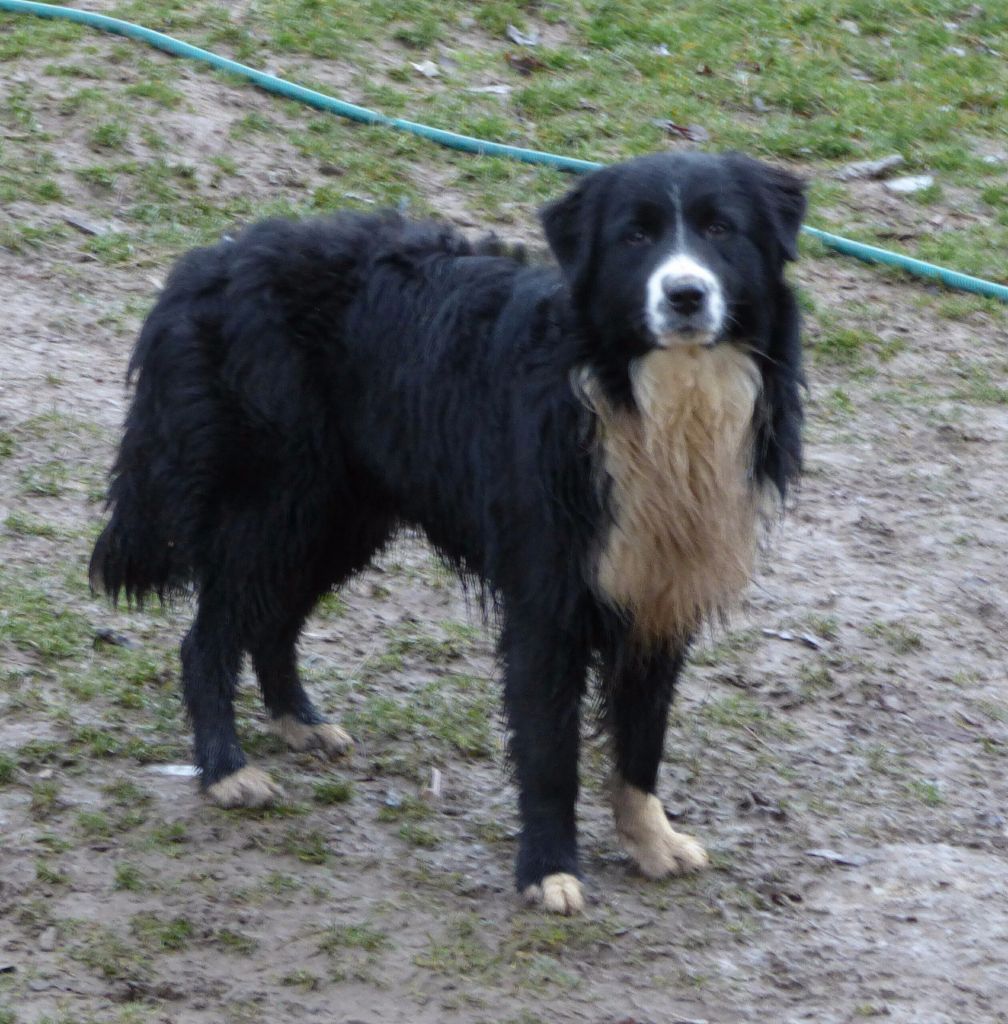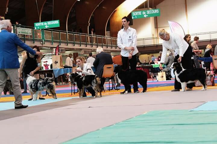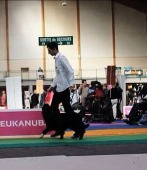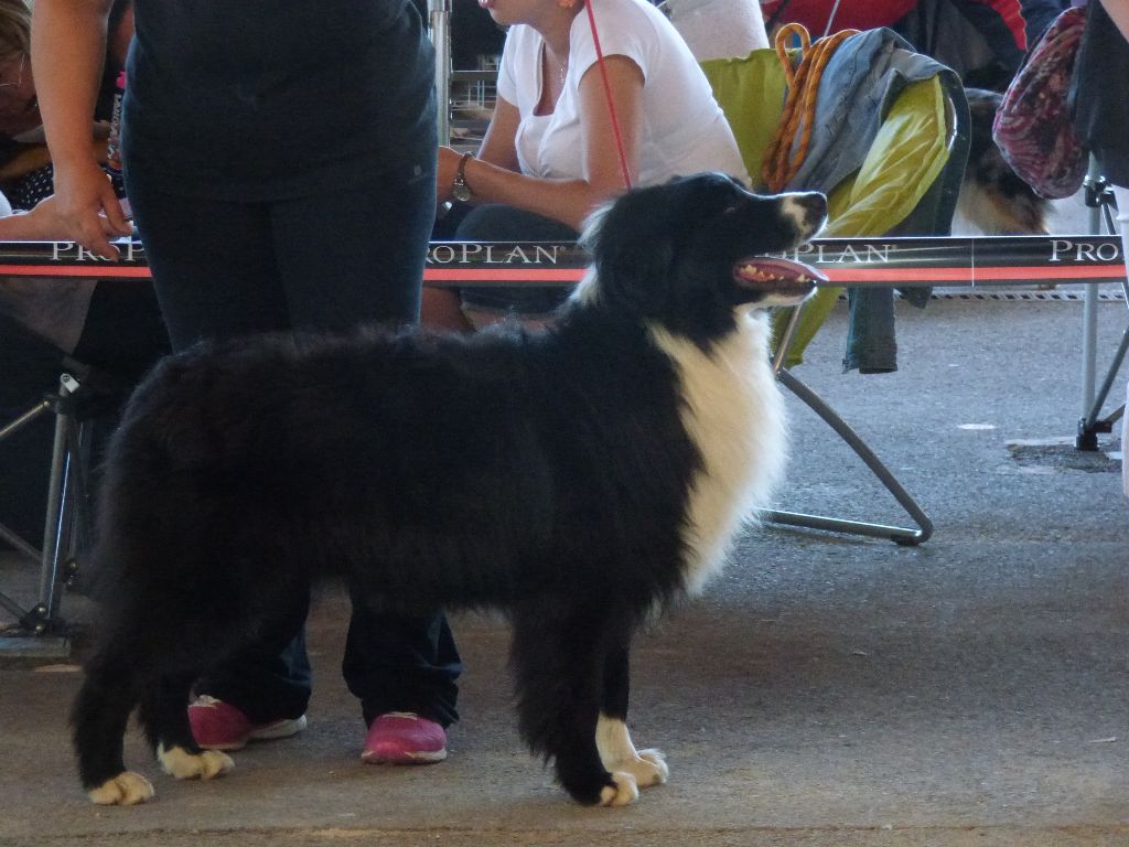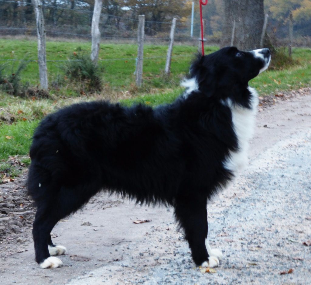 DCC Excellente phénotype un peu inquiet robe noire et blanche tête masculine et expressive EXC dessus la poitrine devra prendre plus de volume EXC aplombs angulation et pieds EXC démarche et allure